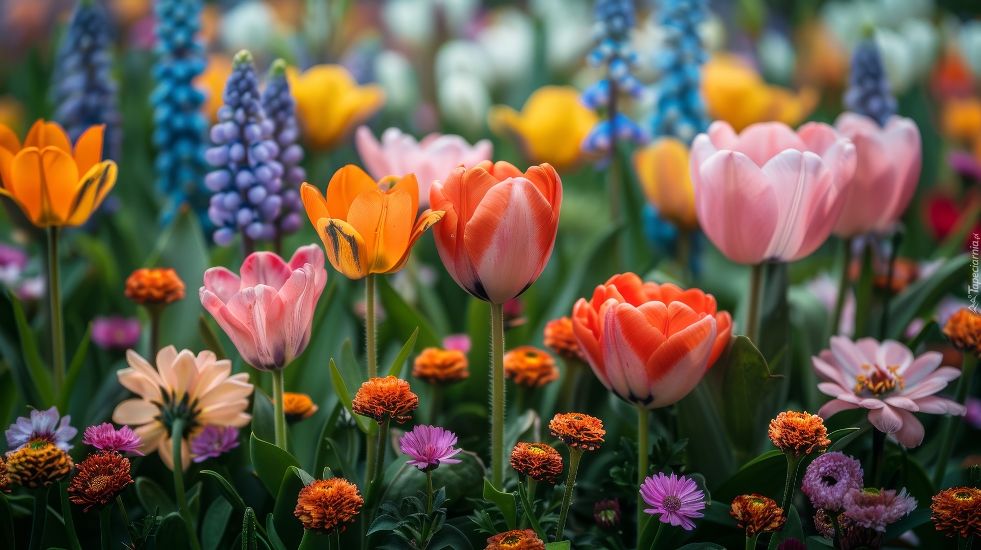 Edytor tapety: Rozświetlone kolorowe wiosenne kwiaty