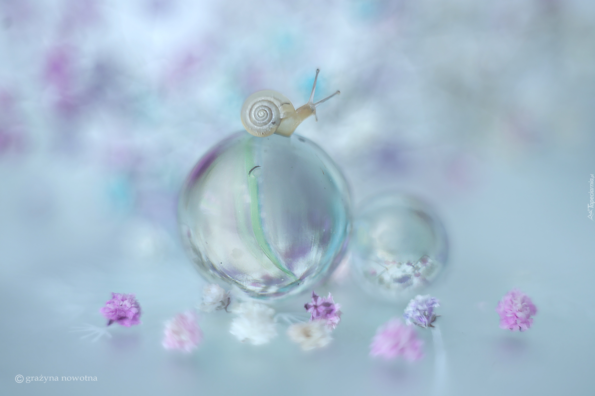 Edytor tapety: Rozmyte tło i ślimak na szklanej kuli