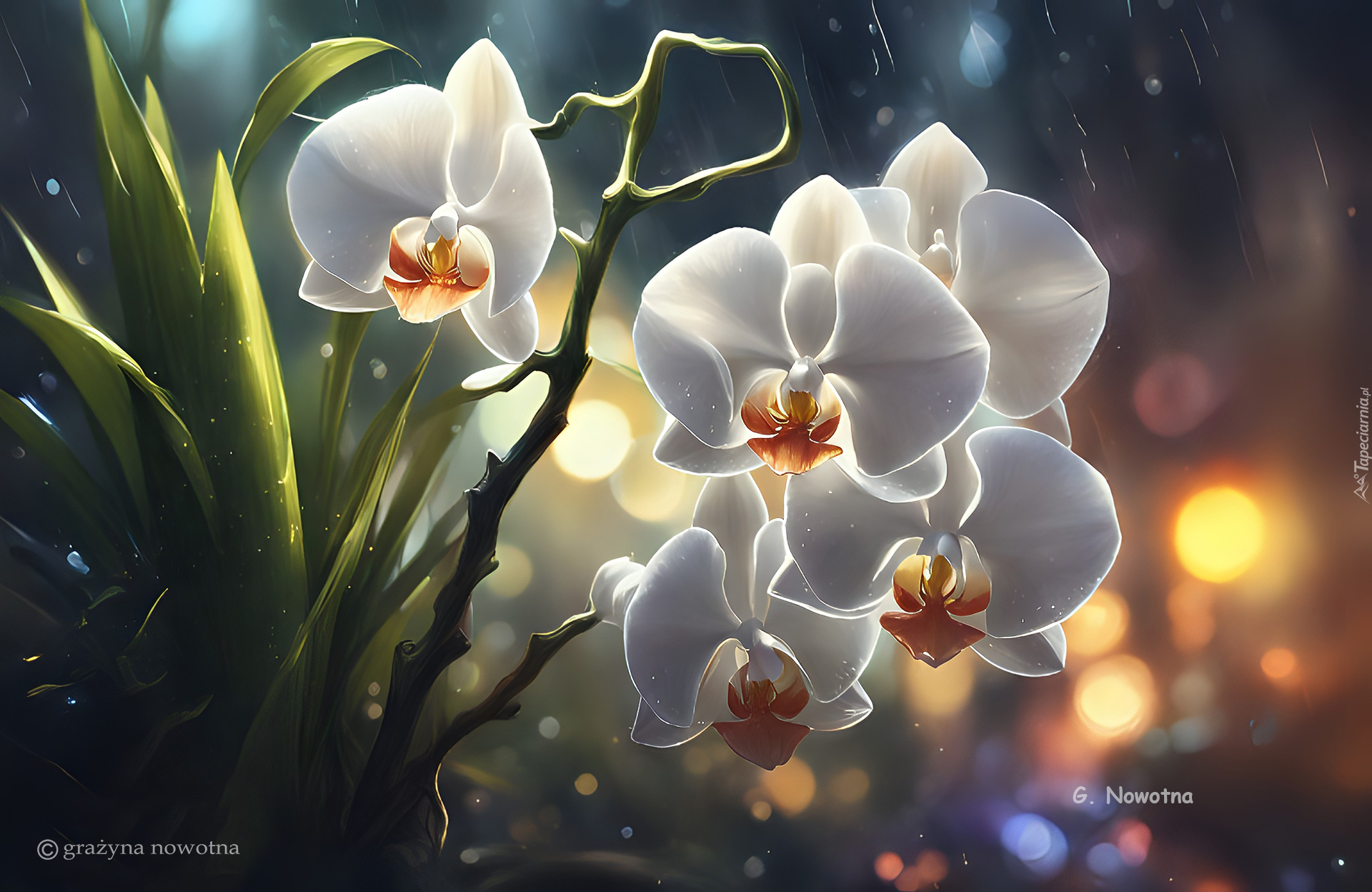 Edytor tapety: Rozświetlone białe storczyki w grafice