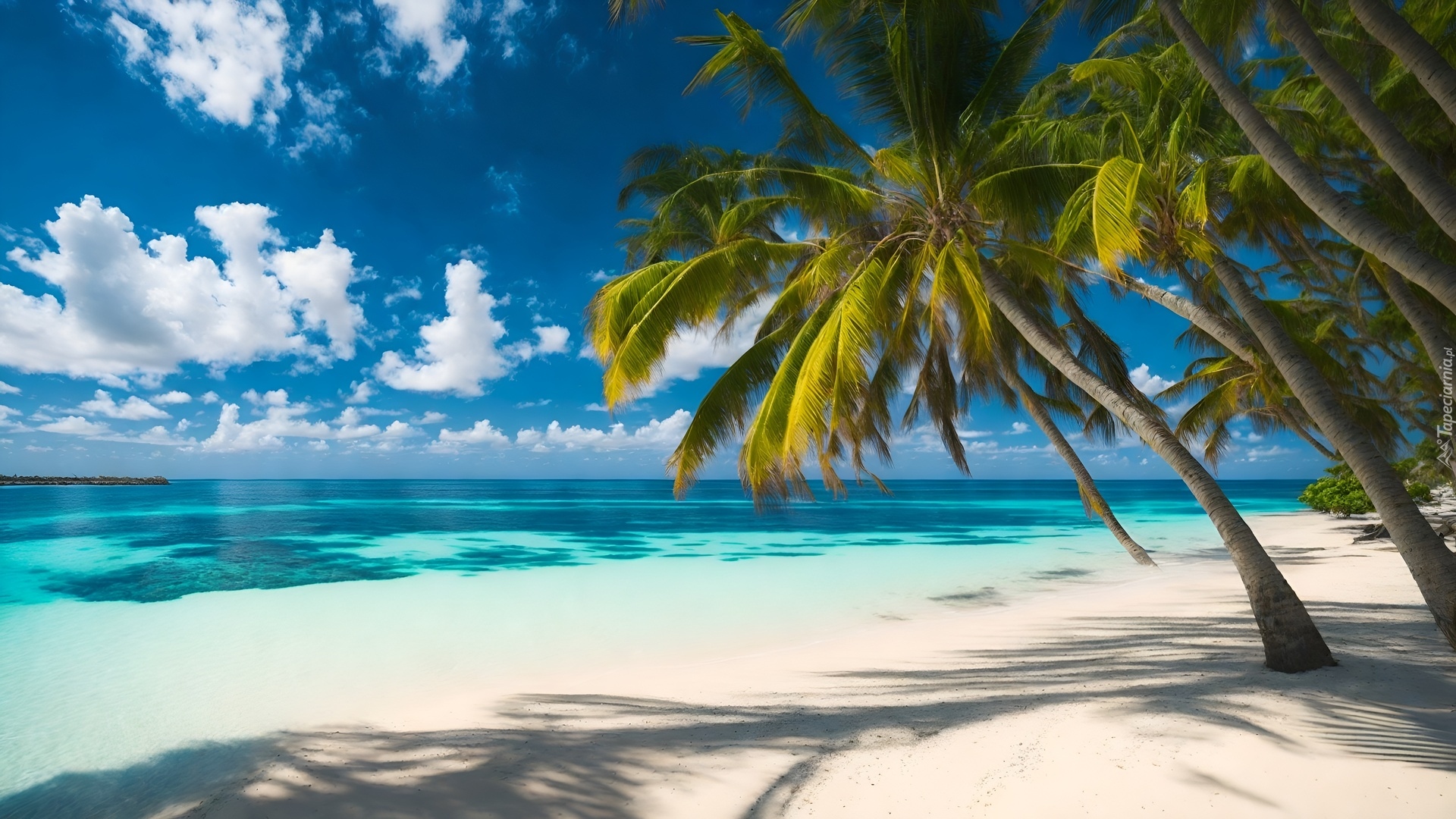 Edytor tapety: Pochylone palmy na plaży