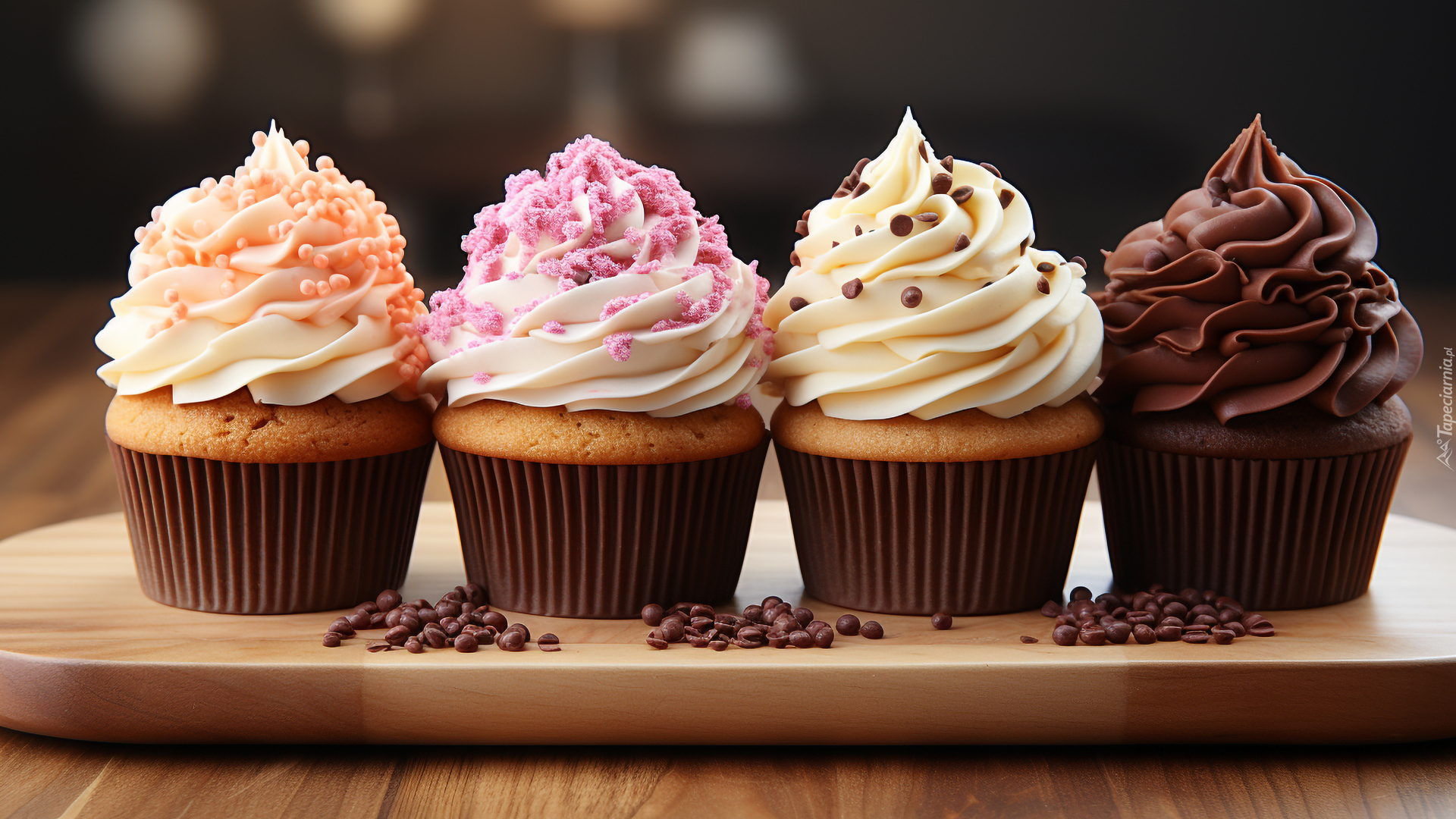 Edytor tapety: Cztery kolorowe babeczki kremowe