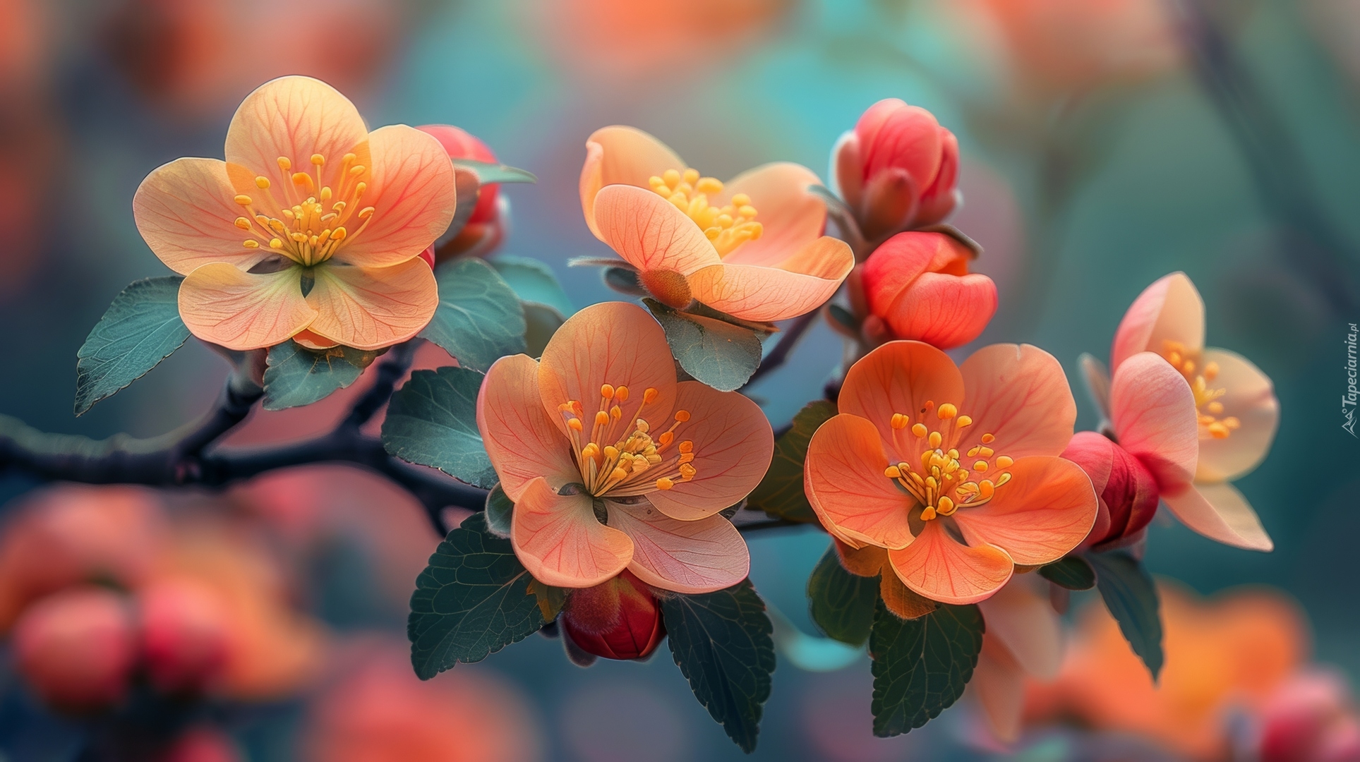 Edytor tapety: Ukwiecona gałązka z pomarańczowymi kwiatkami i pąkami