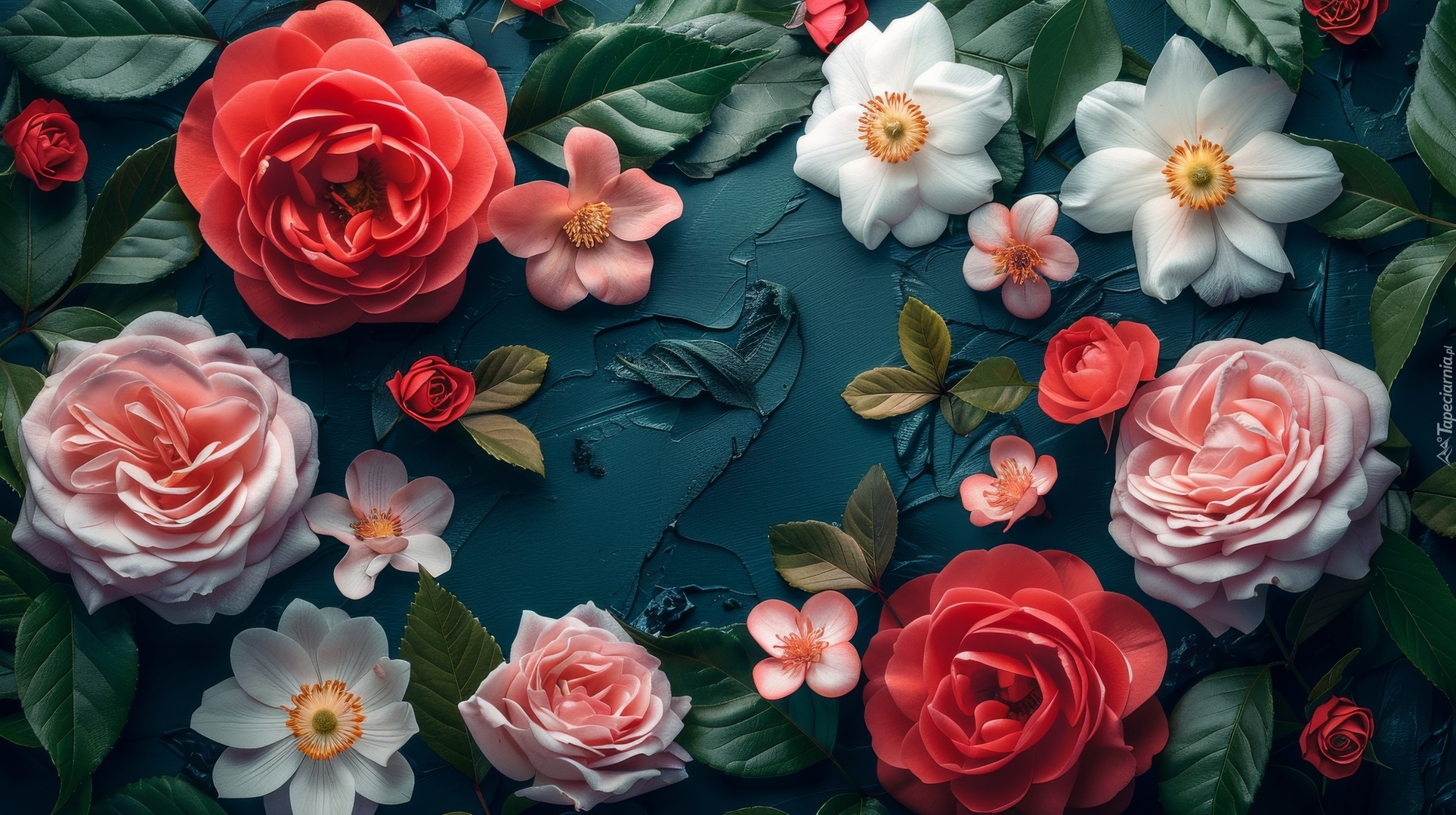 Edytor tapety: Kolorowe róże i białe kwiaty