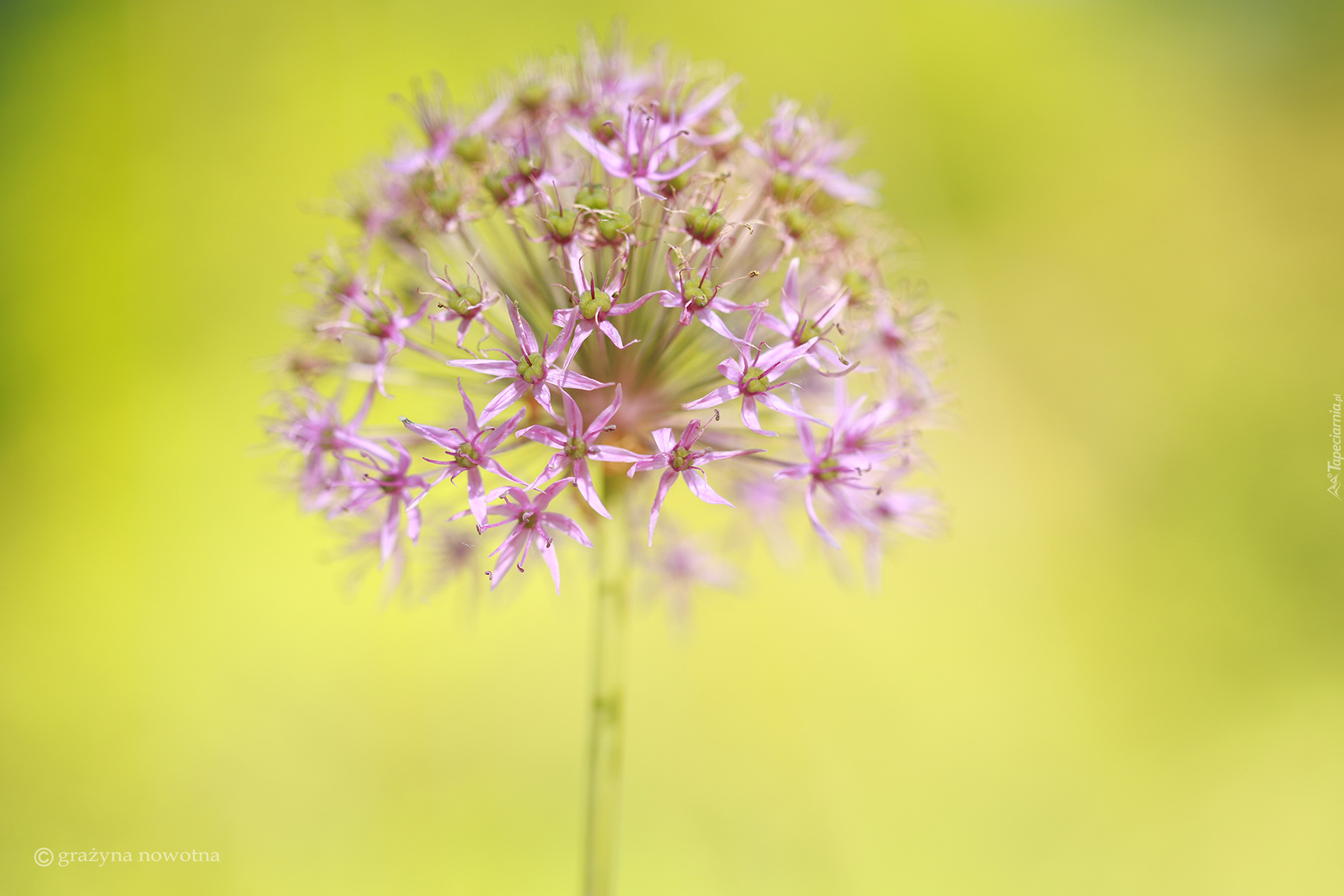 Edytor tapety: Fioletowy kwiat czosnku ozdobnego na rozmytym tle
