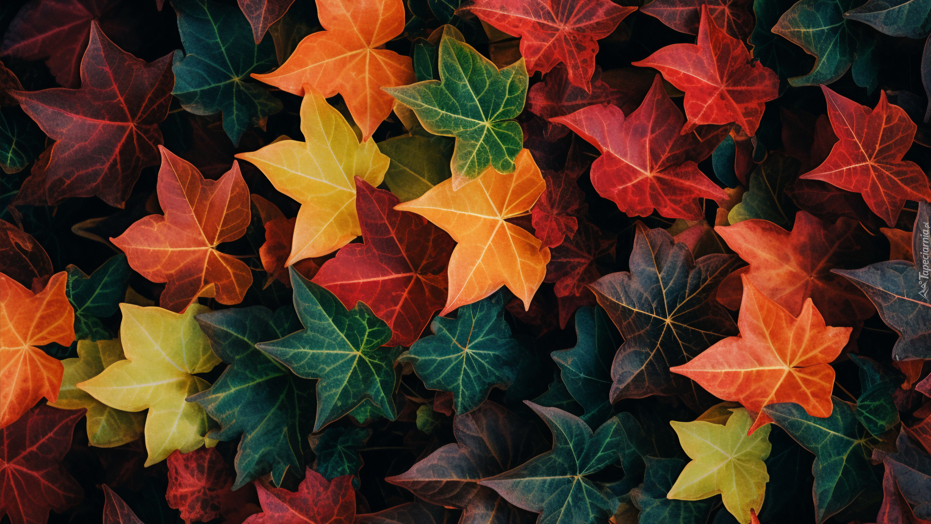 Edytor tapety: Kolorowe liście bluszczu w zbliżeniu