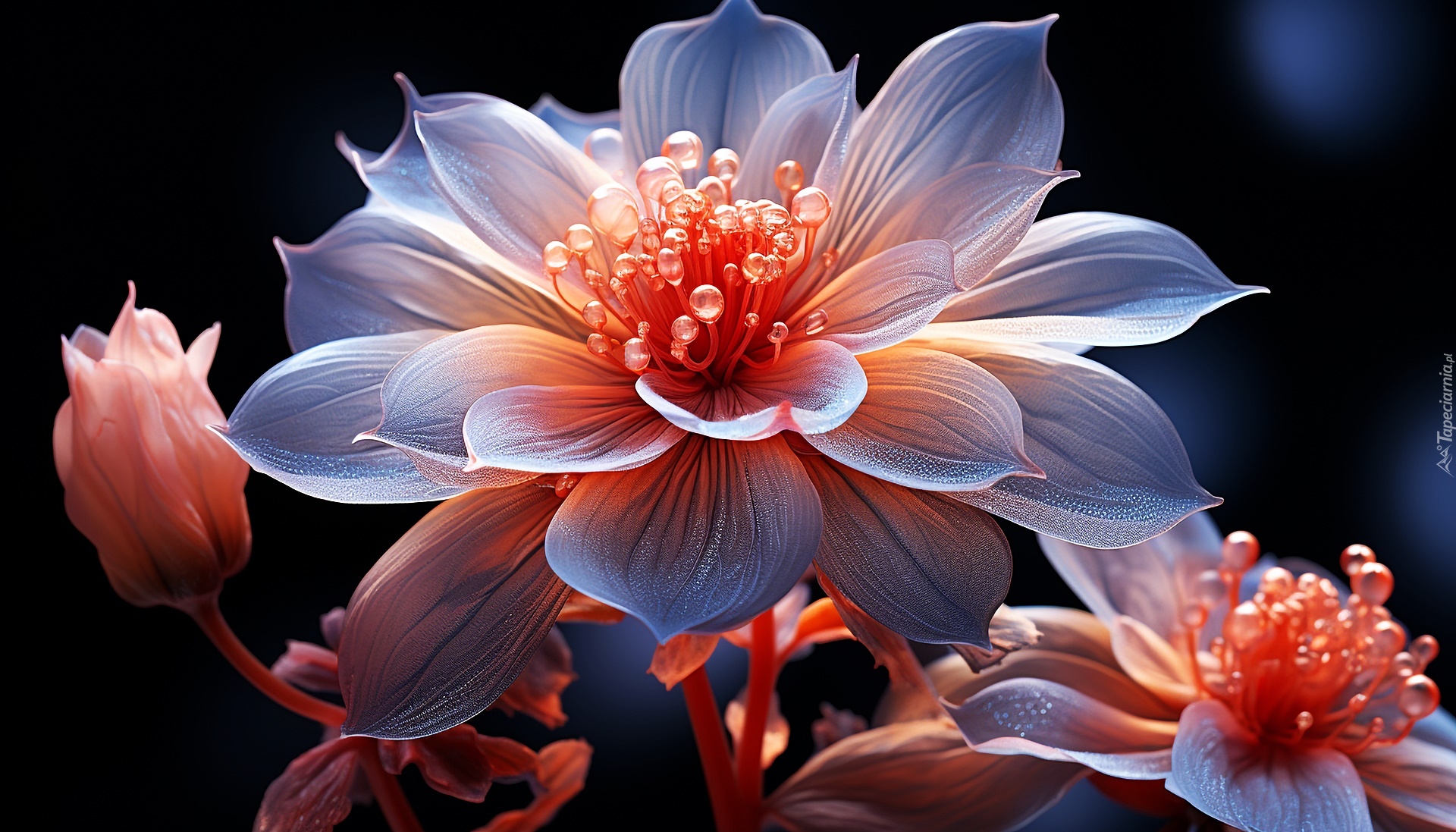 Edytor tapety: Rozwinięty kolorowy kwiat na ciemnym tle
