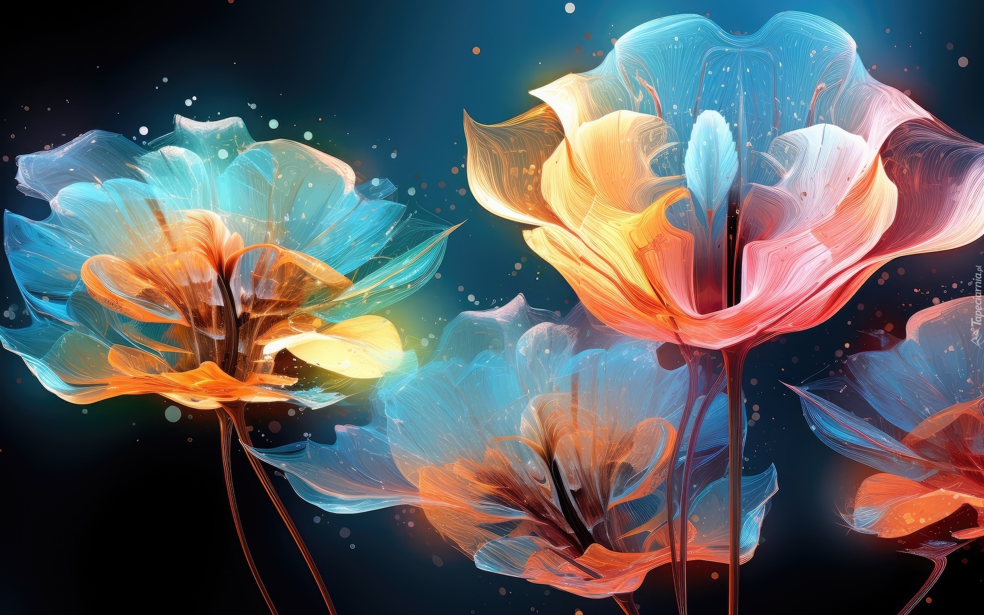 Edytor tapety: Kolorowe przezroczyste kwiaty w grafice