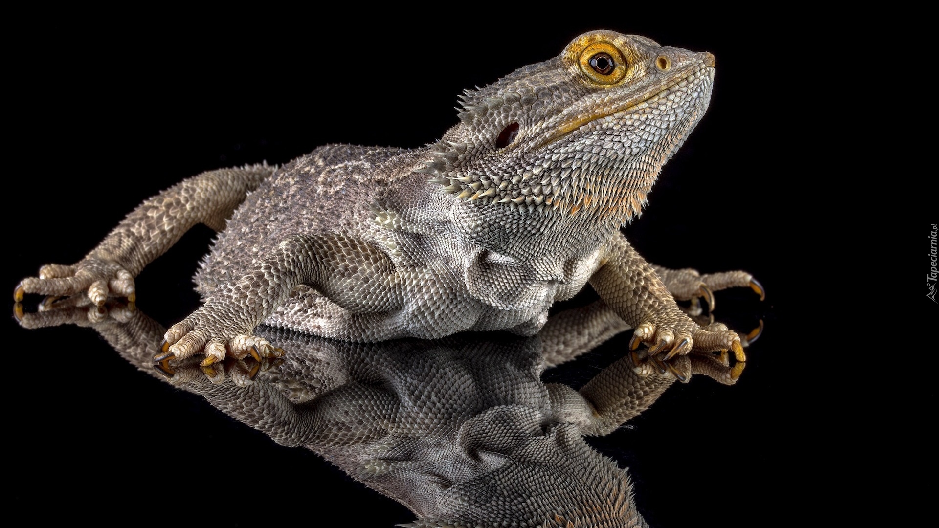 Edytor tapety: Odbicie agamy brodatej na czarnym tle