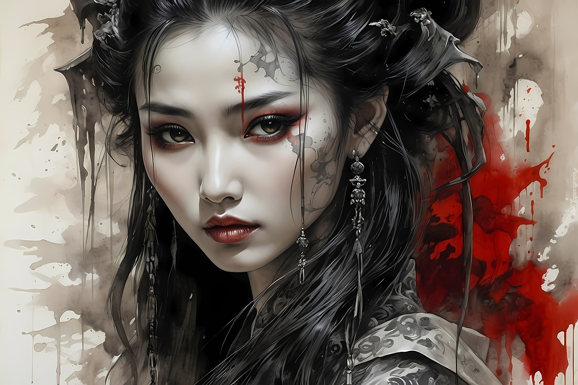 Edytor tapety: Spojrzenie ciemnowłosej Azjatki w grafice