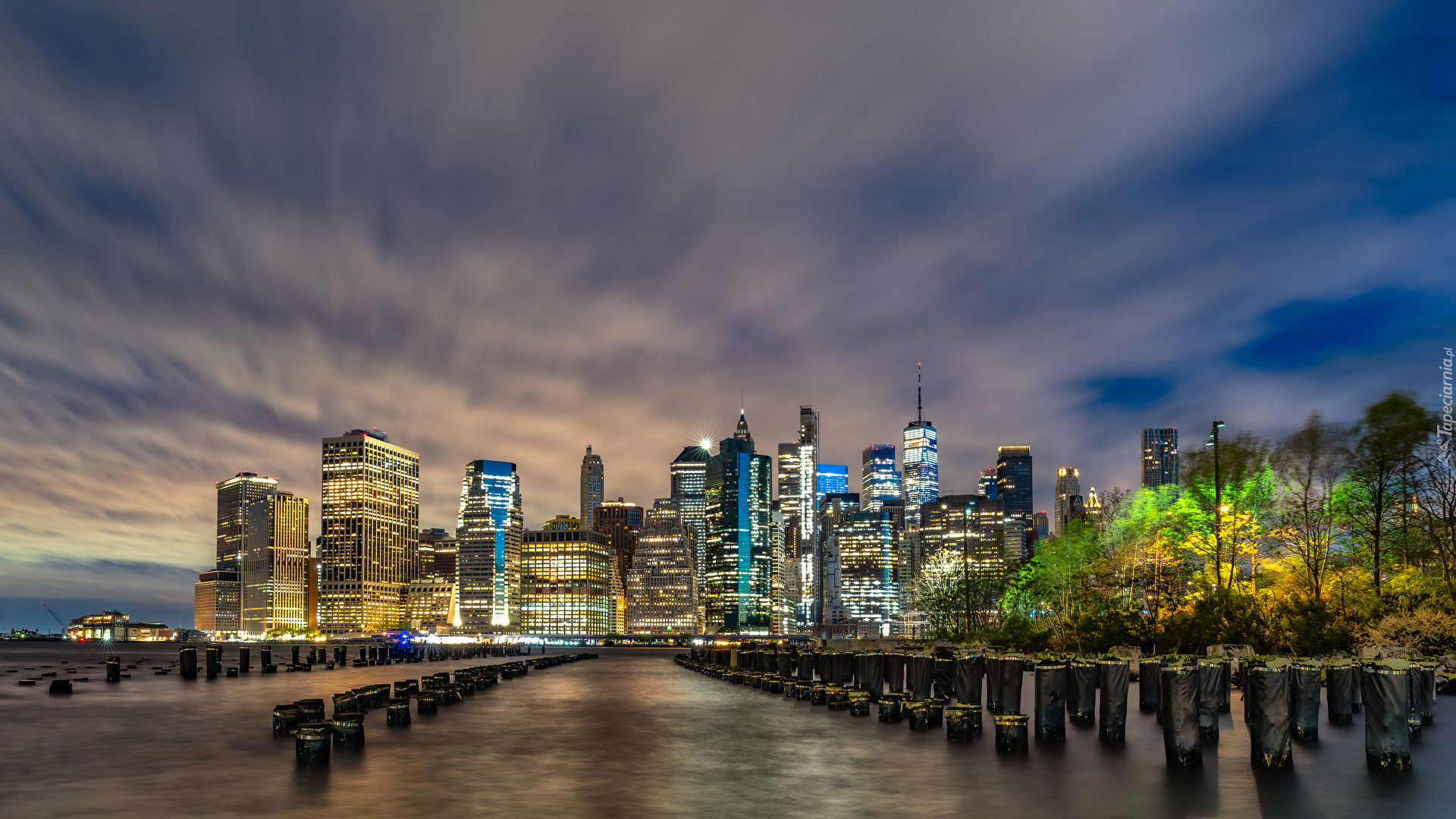 Edytor tapety: Oświetlone wieczorem wieżowce w Nowym Jorku