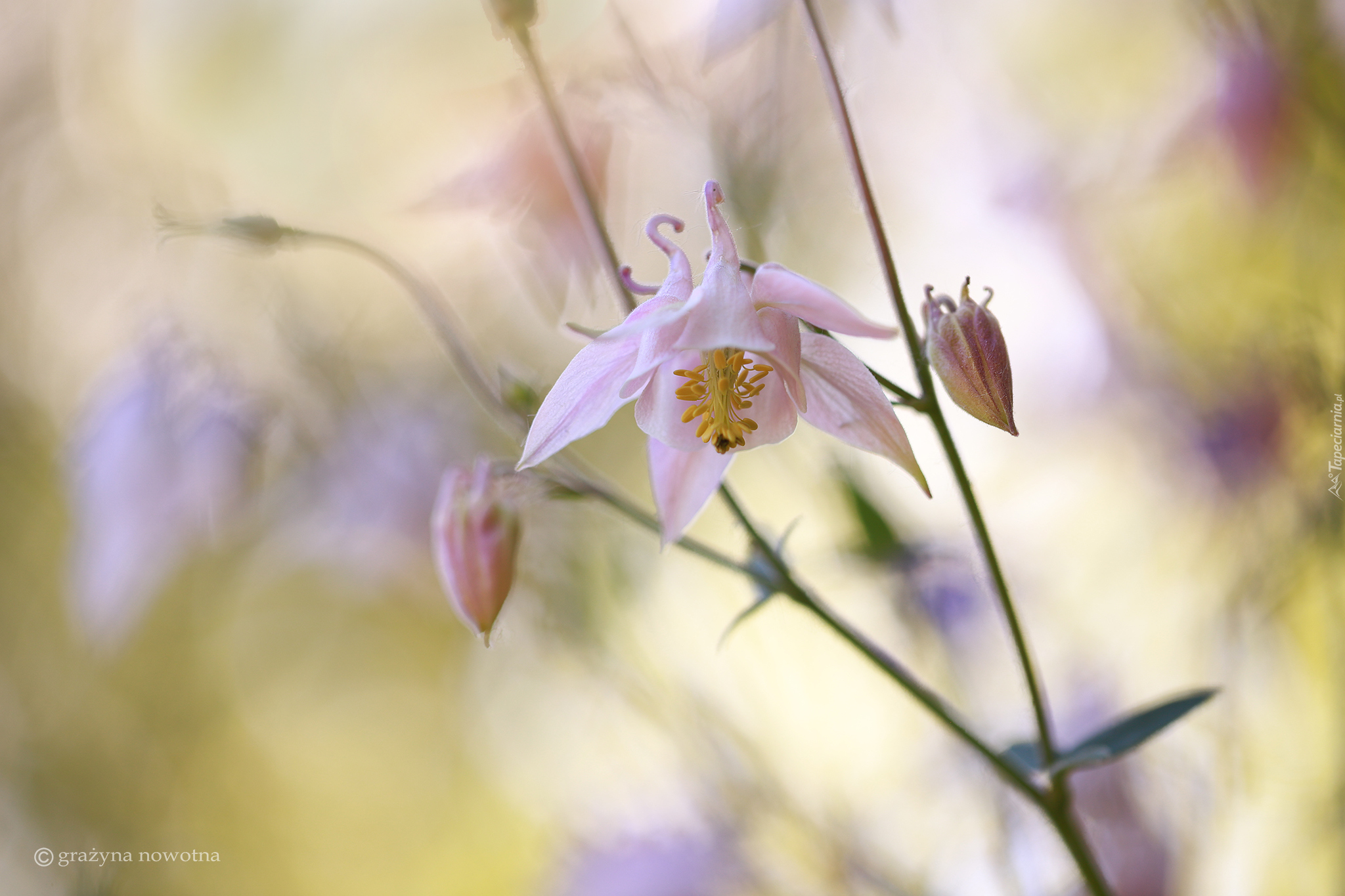 Edytor tapety: Różowy orlik z pąkami na gałązce