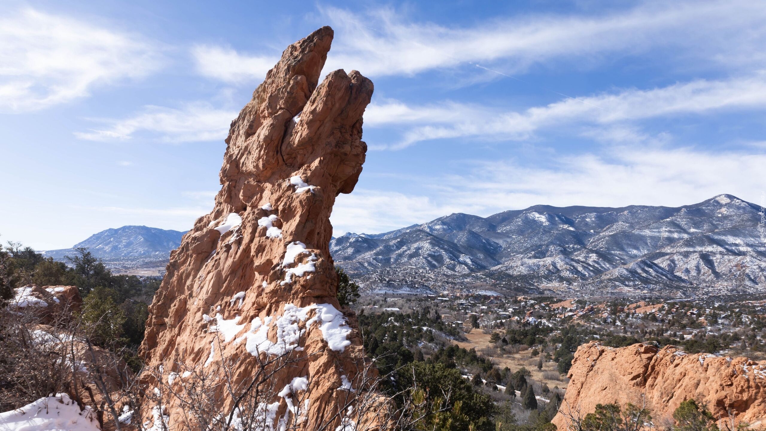 Edytor tapety: Ośnieżona skała i góry w oddali