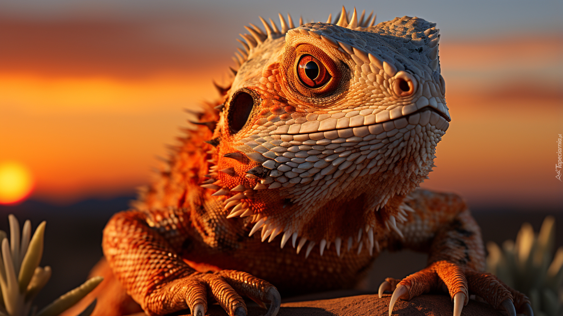 Edytor tapety: Agama brodata w zbliżeniu na rozmytym tle