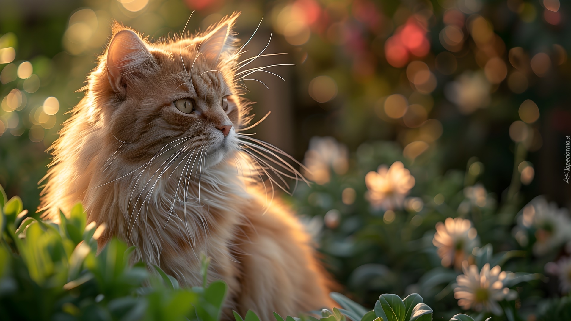 Edytor tapety: Spojrzenie rudego kota wśród kwiatów