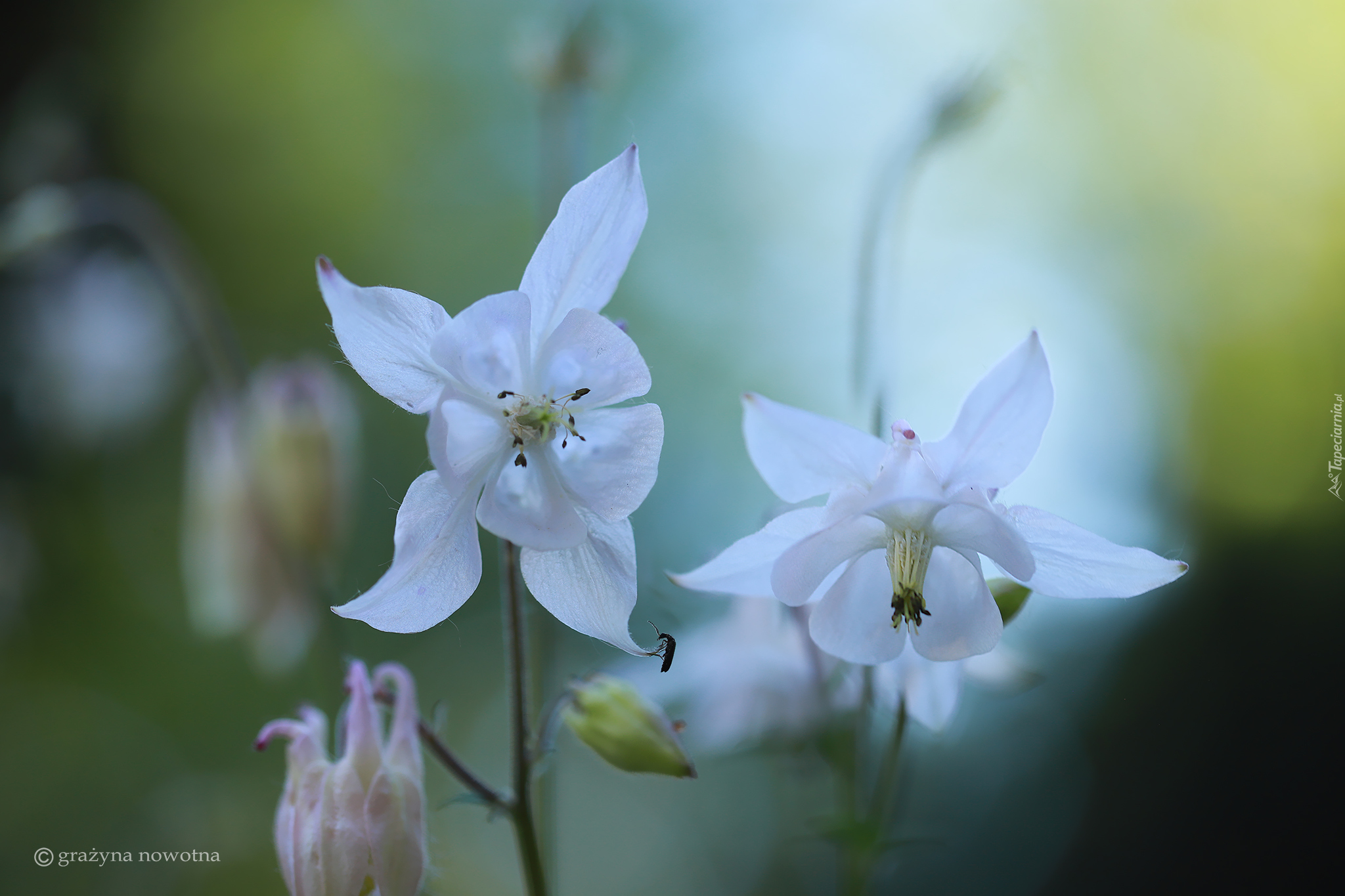 Edytor tapety: Białe orliki i rozmyte tło