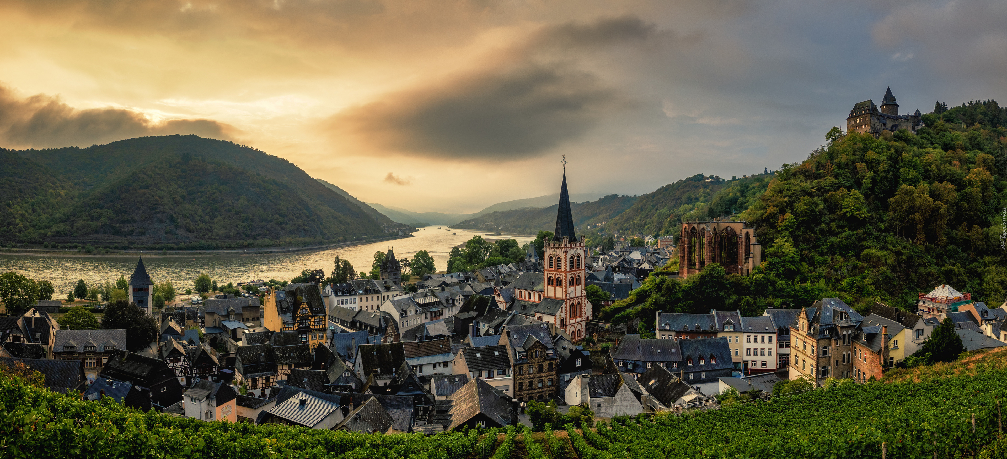 Edytor tapety: Miasto Bacharach nad rzeką Ren w Niemczech