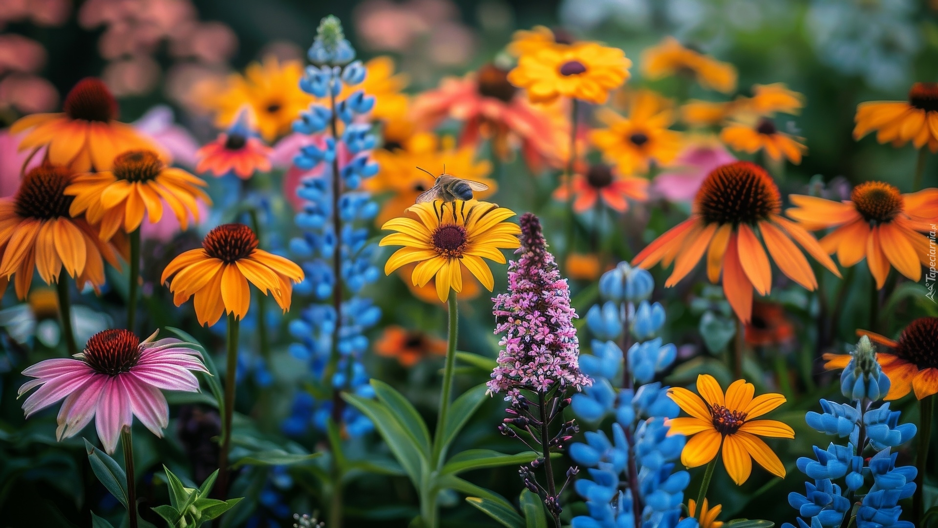 Edytor tapety: Pszczoła na żółtym kwiatku jeżówki