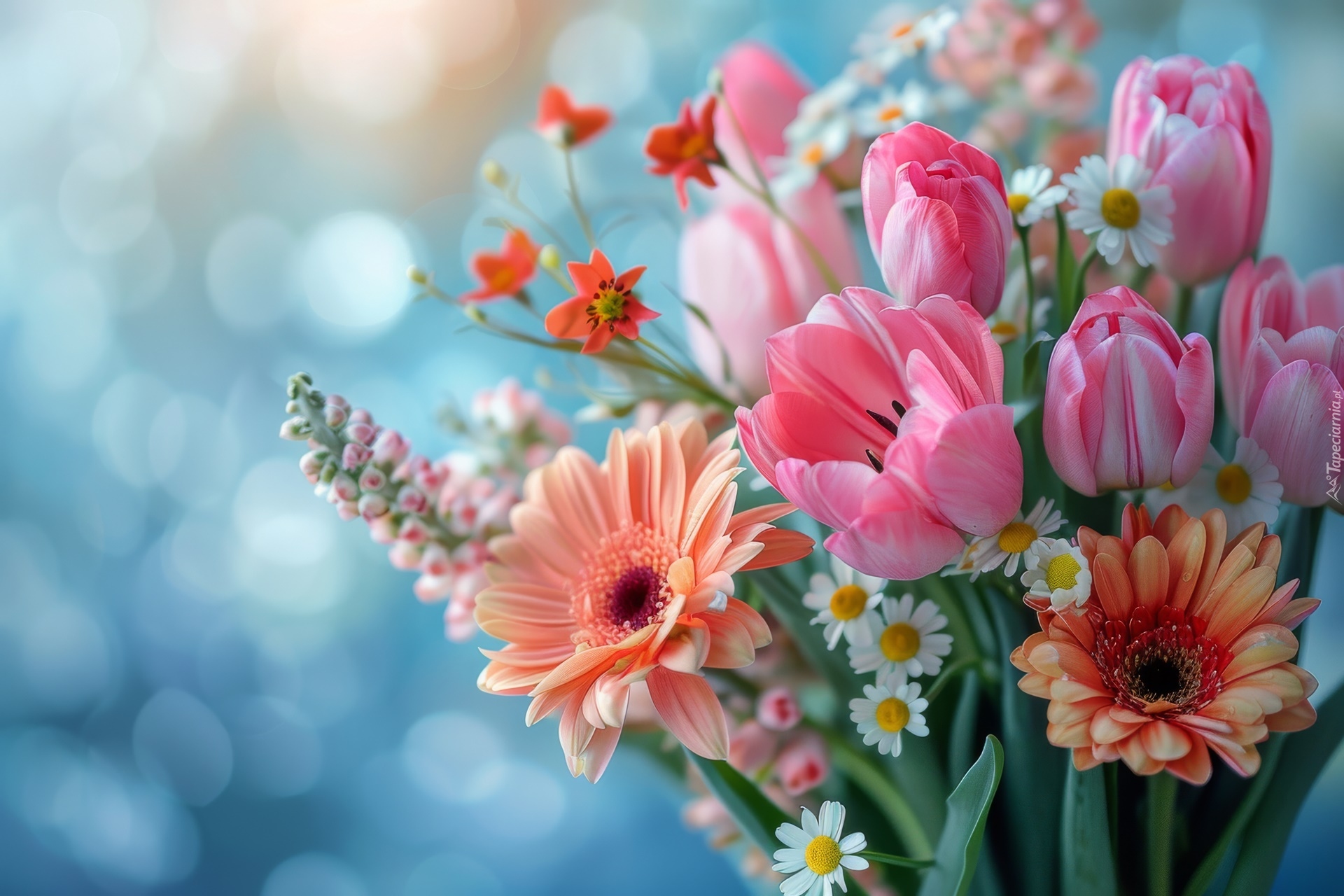 Edytor tapety: Bukiet różnych kolorowych kwiatów