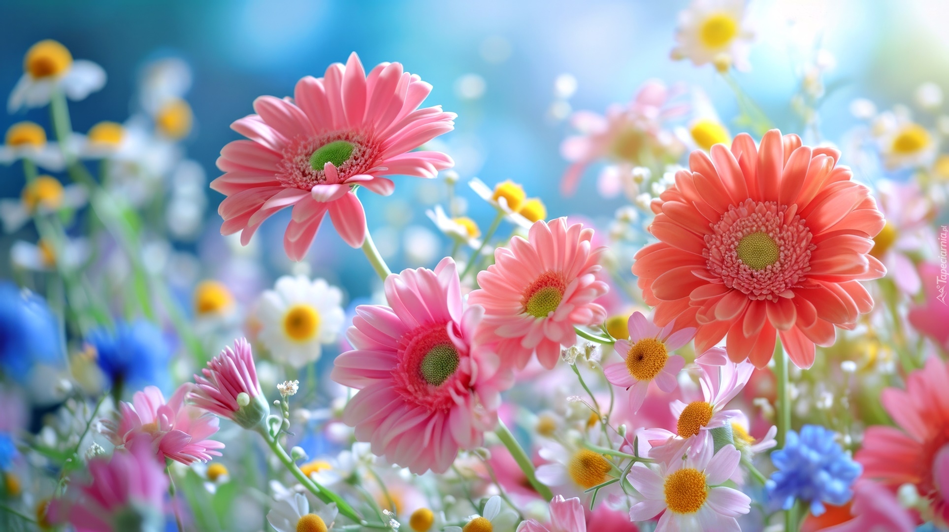 Edytor tapety: Gerbery i inne kwiaty w słonecznym świetle
