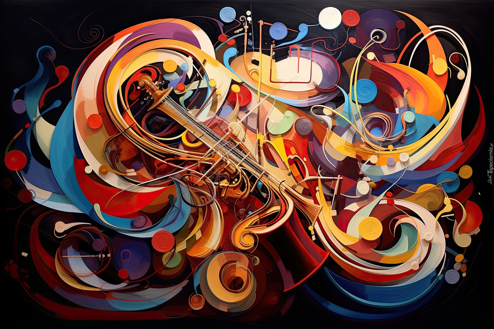 Edytor tapety: Grafika z kolorowymi instrumentami muzycznymi na czarnym tle