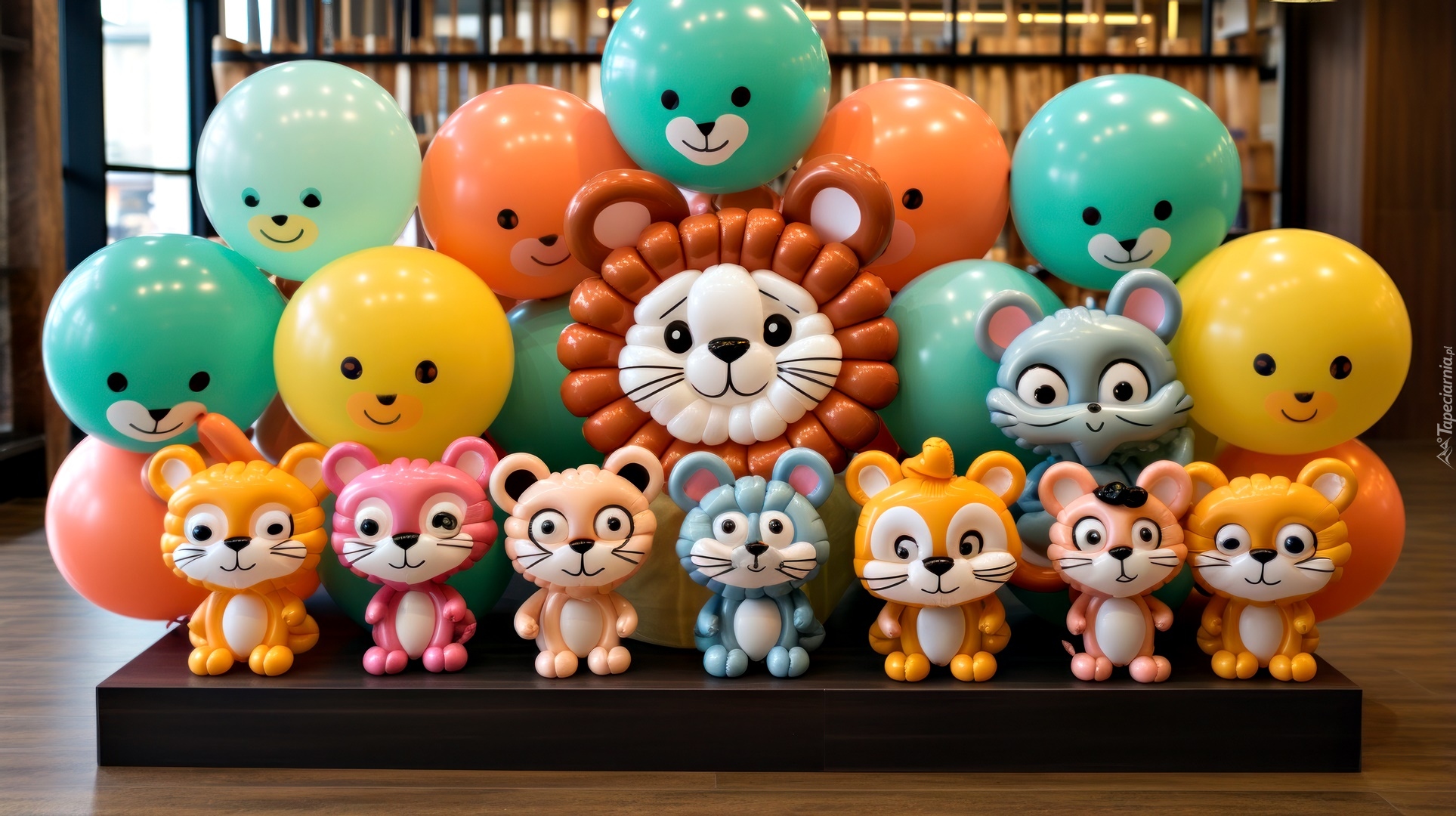 Edytor tapety: Kolorowe figurki zwierząt i balony z buźkami
