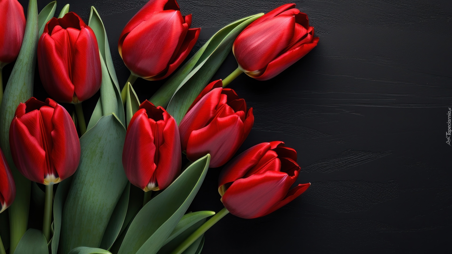 Edytor tapety: Rozwijające się czerwone tulipany na czarnym tle