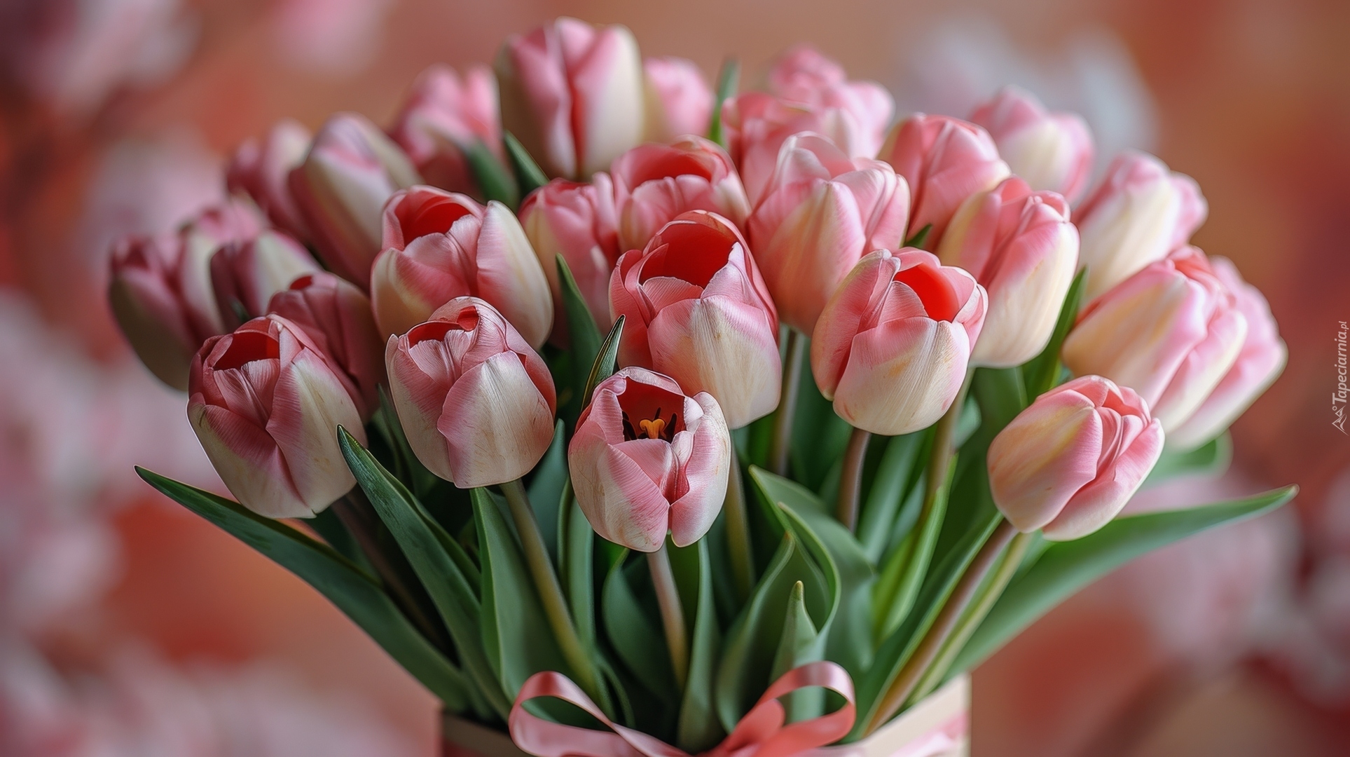 Edytor tapety: Biało-różowe tulipany w bukiecie