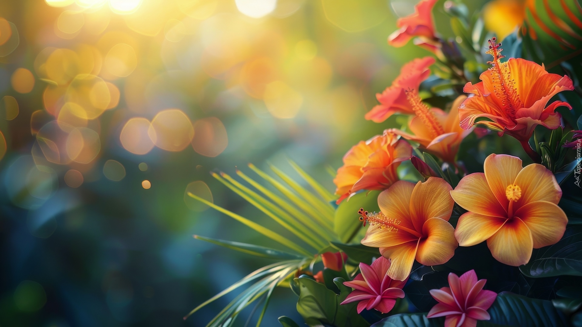 Edytor tapety: Kolorowe hibiskusy na rozmytym tle