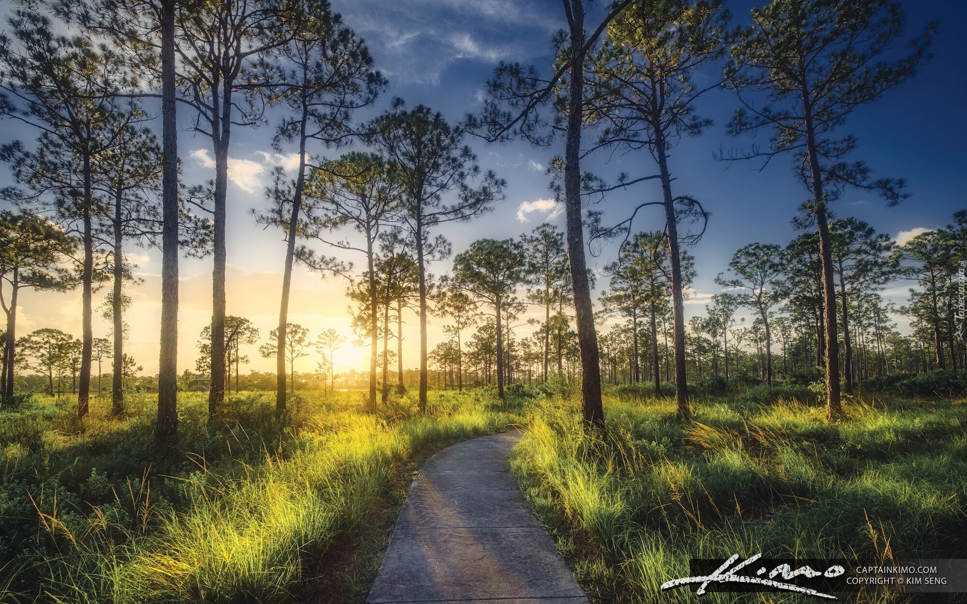 Edytor tapety: Droga wśród traw i wysokich drzew