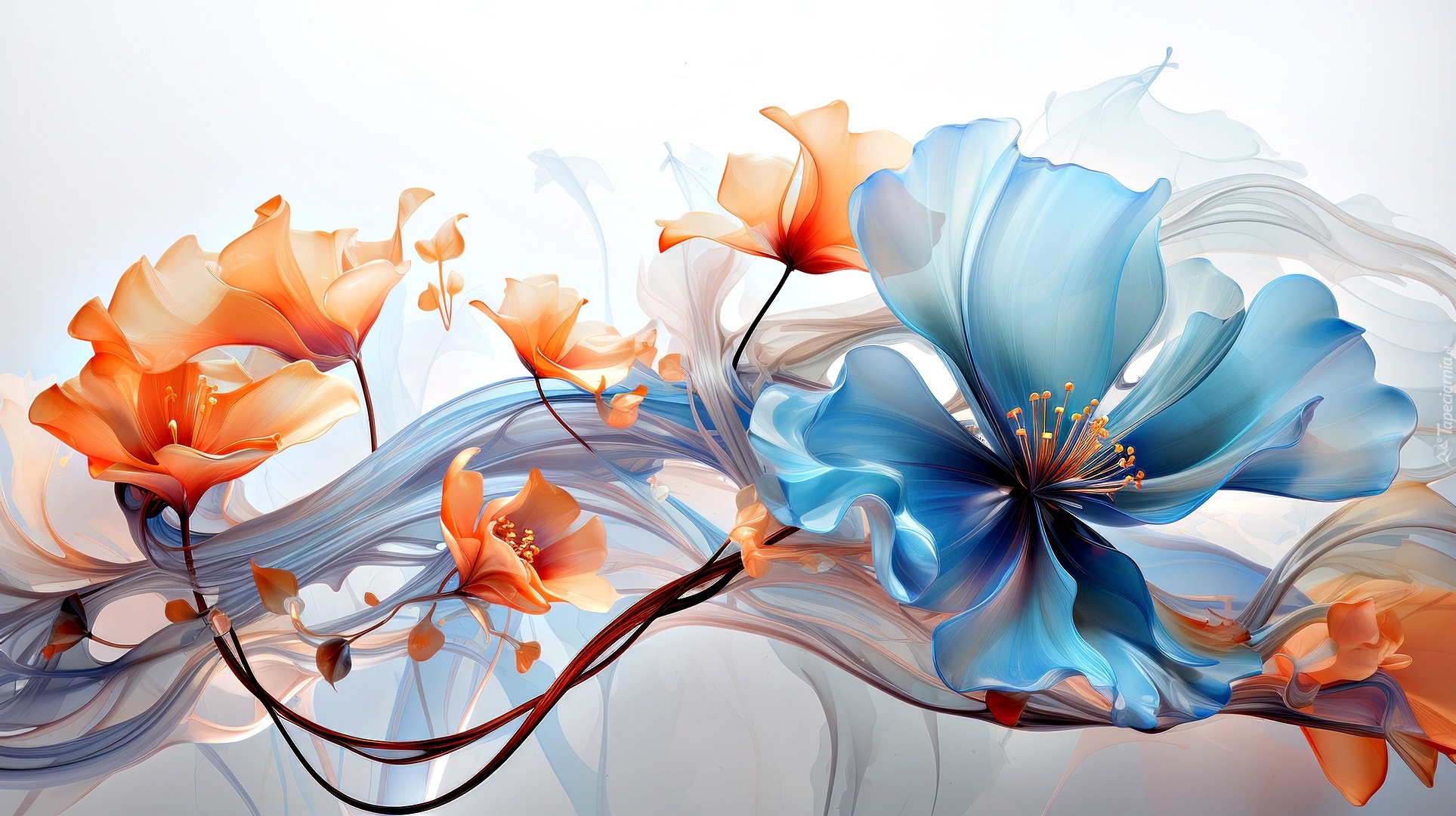 Edytor tapety: Niebieski i pomarańczowe kwiaty na jasnym tle