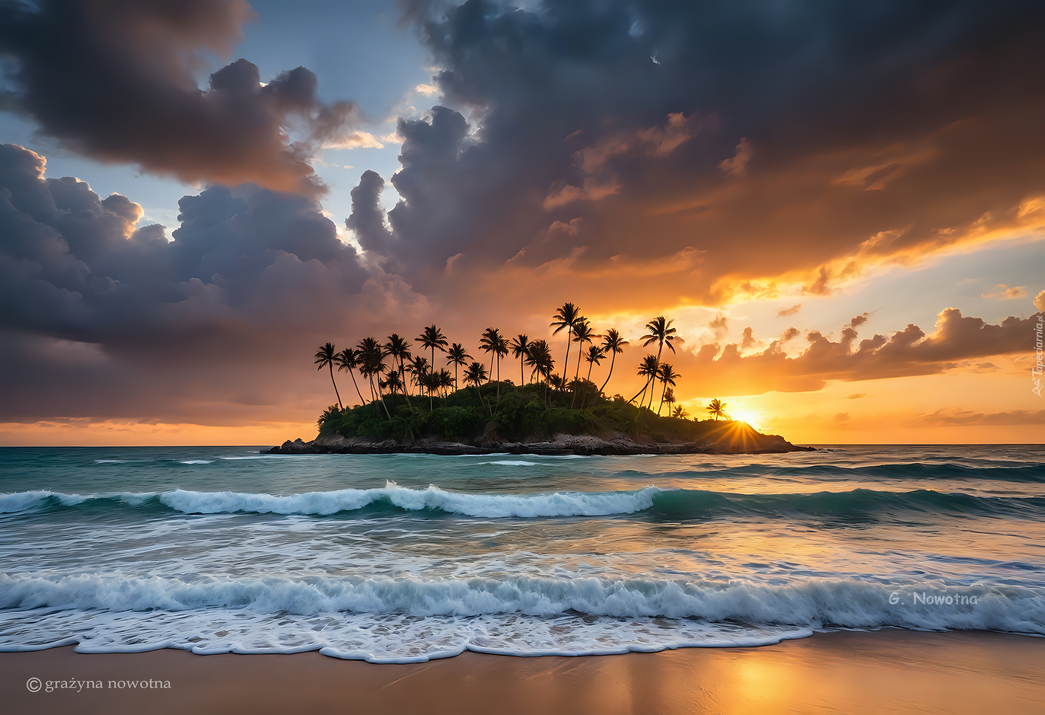Edytor tapety: Wyspa z palmami w morzu