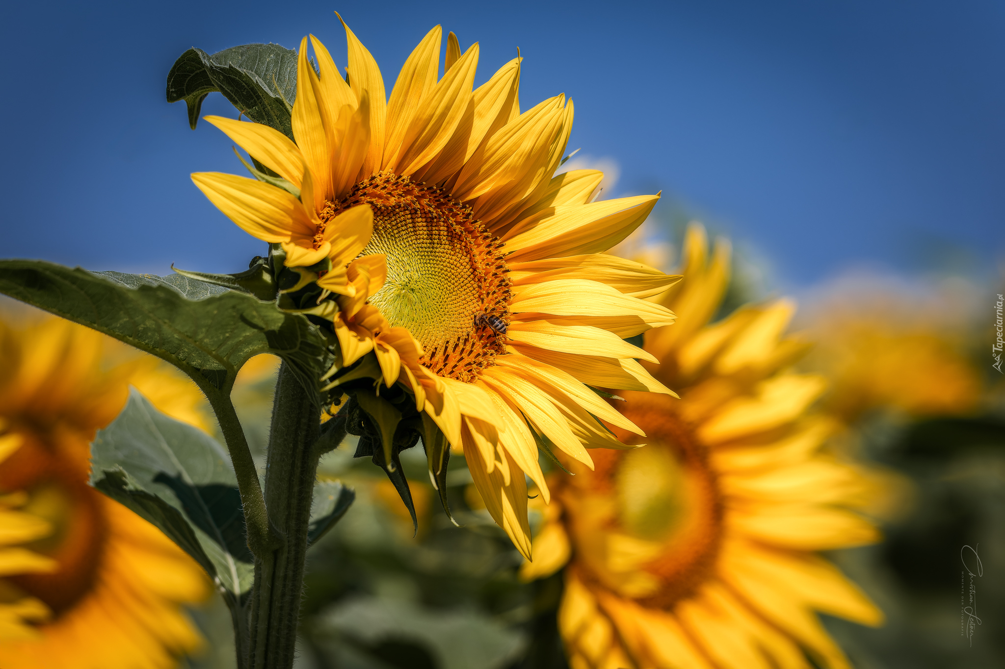 Edytor tapety: Pszczoła na rozwiniętym słoneczniku
