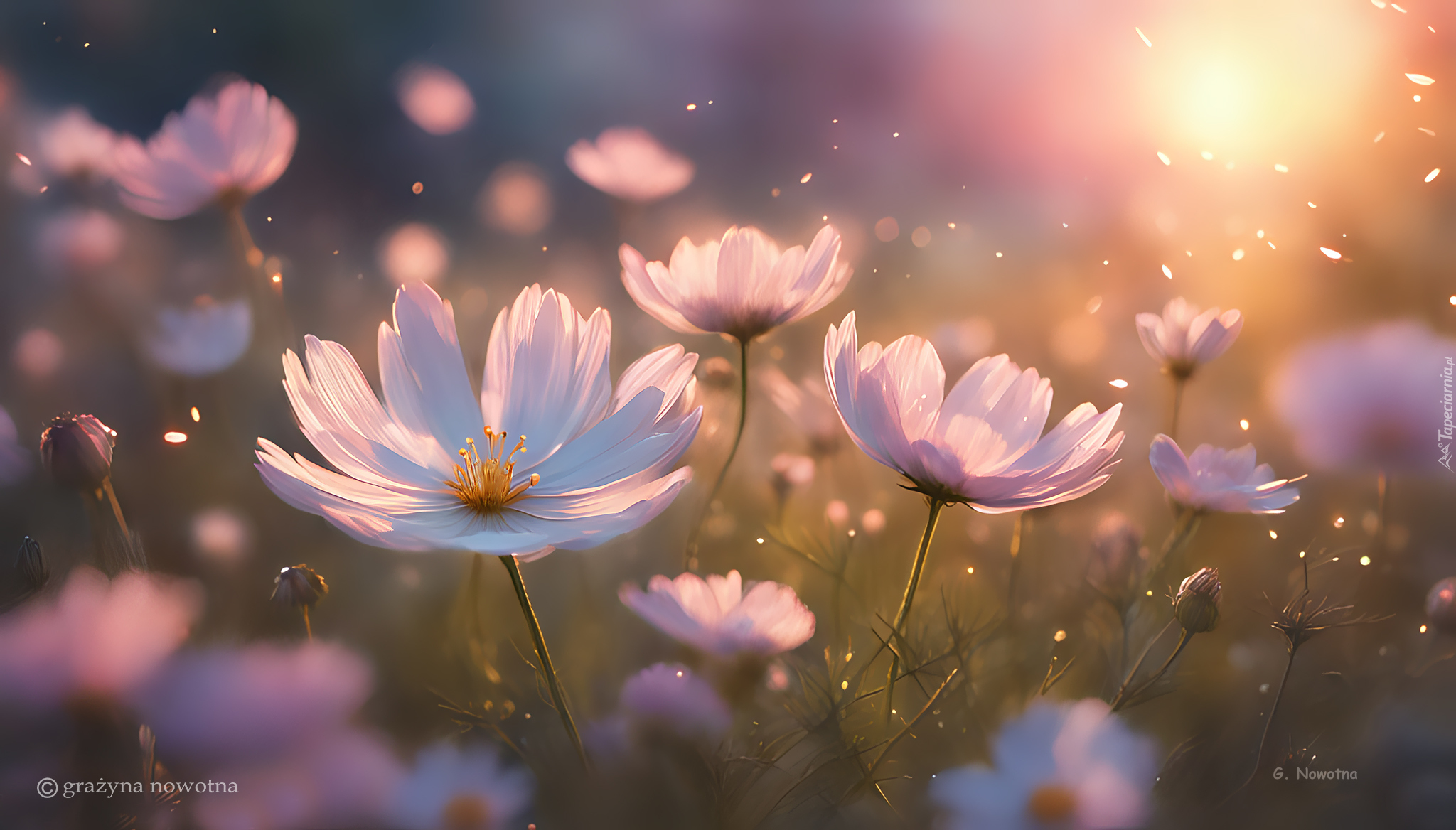 Edytor tapety: Kwiaty kosmei w słonecznym świetle