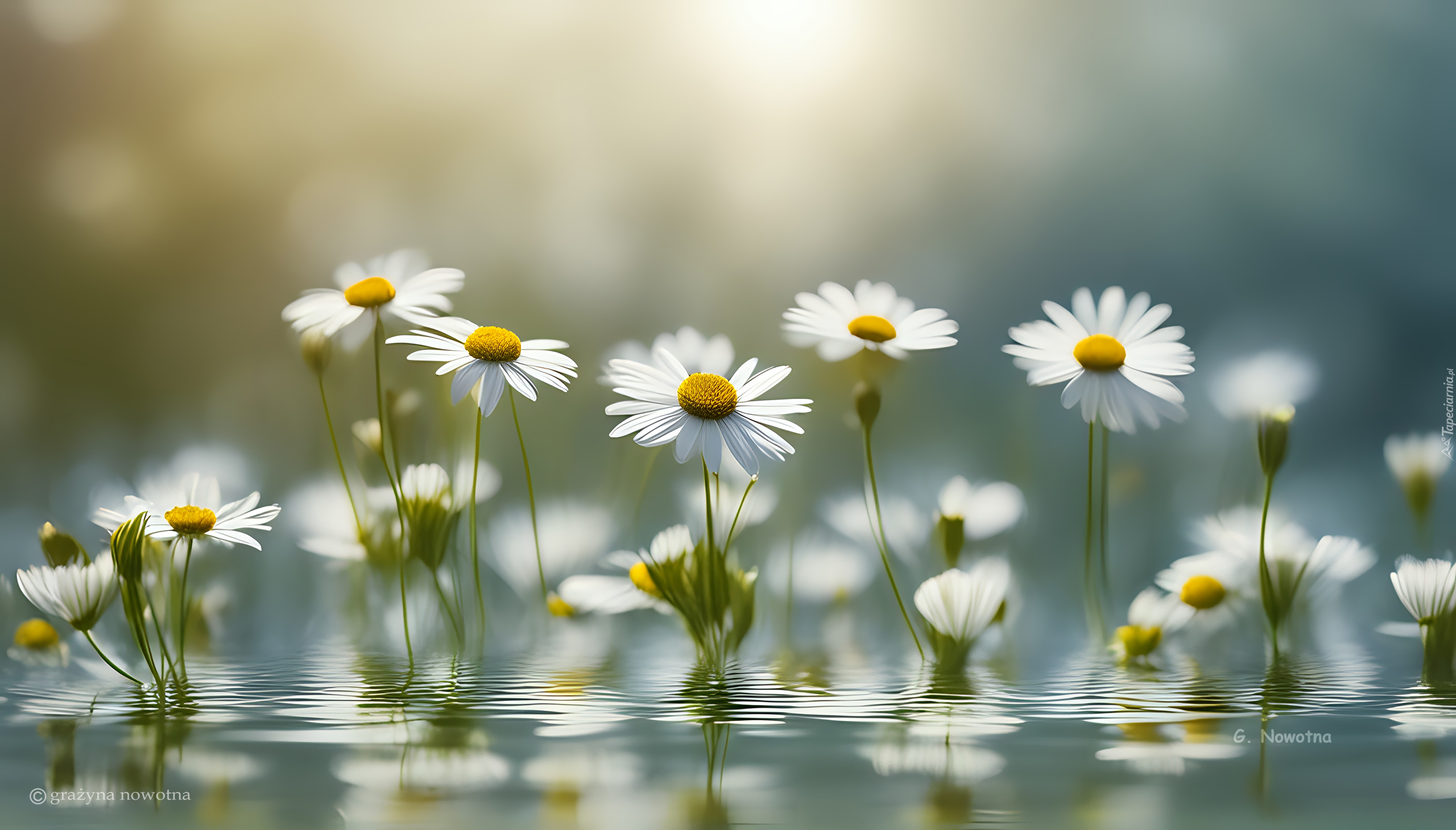 Edytor tapety: Białe margerytki w wodzie
