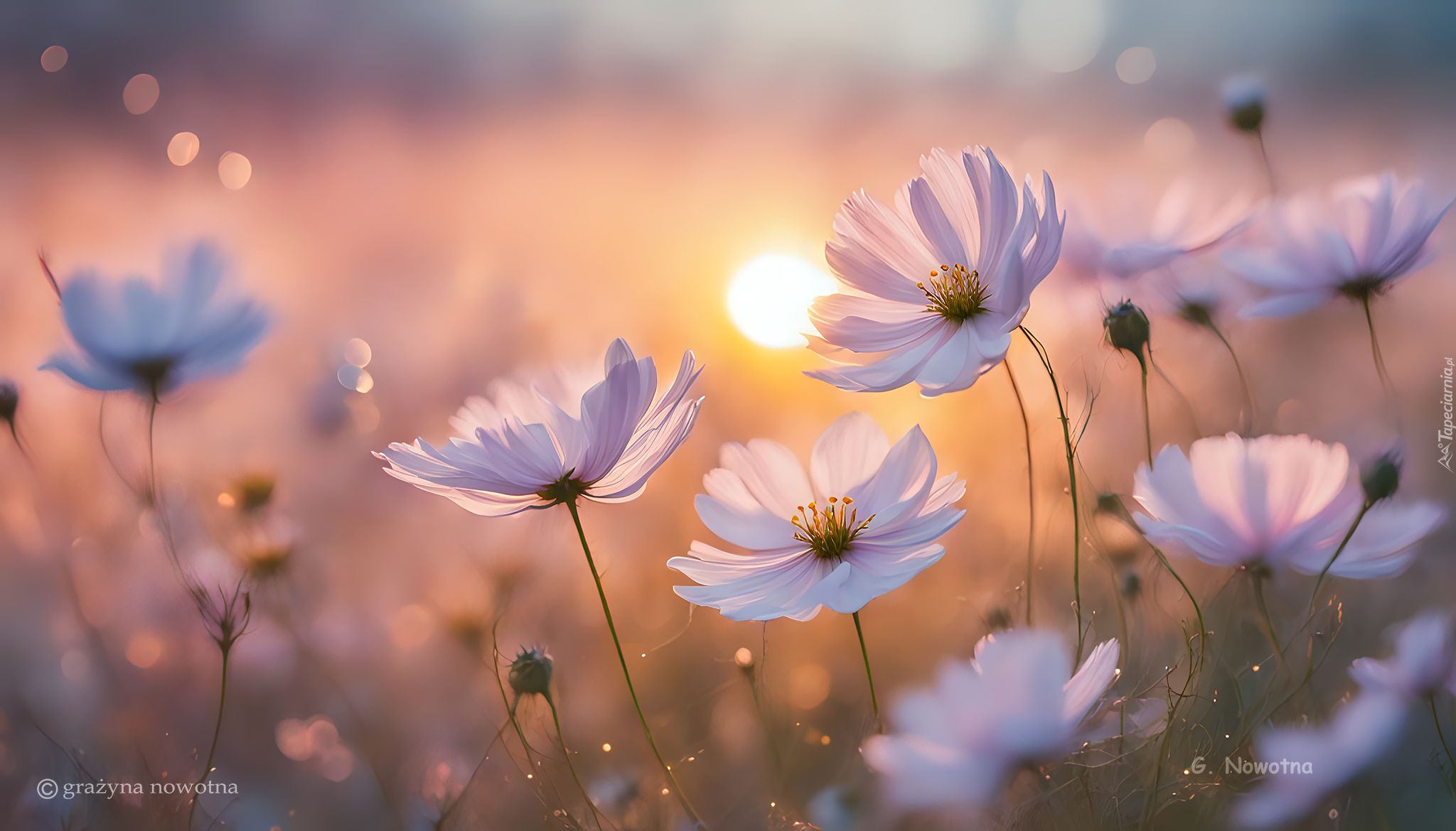 Edytor tapety: Rozświetlone blaskiem słońca jasnoróżowe kosmee