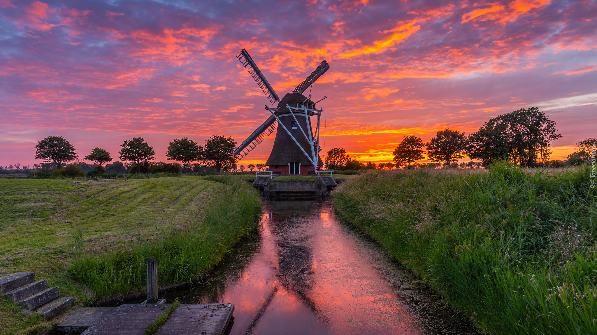 Edytor tapety: Wiatrak na tle kolorowego nieba