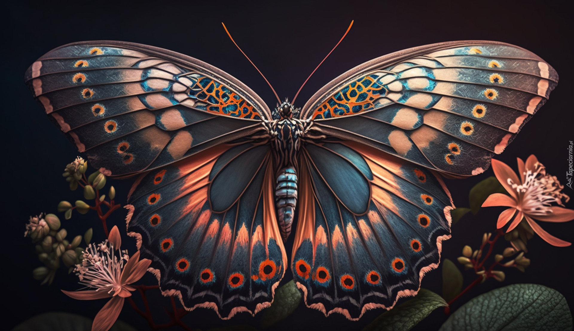 Edytor tapety: Kolorowy motyl z rozłożonymi skrzydłami w grafice