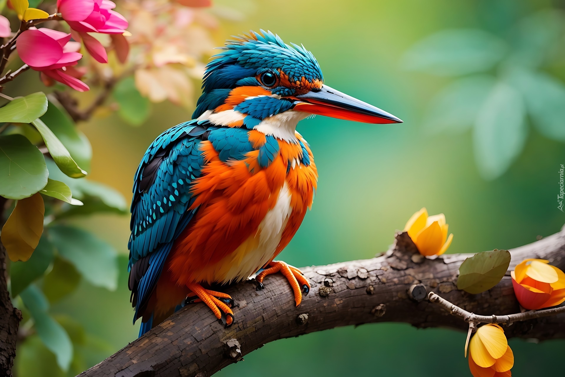Edytor tapety: Kolorowy zimorodek na gałęzi
