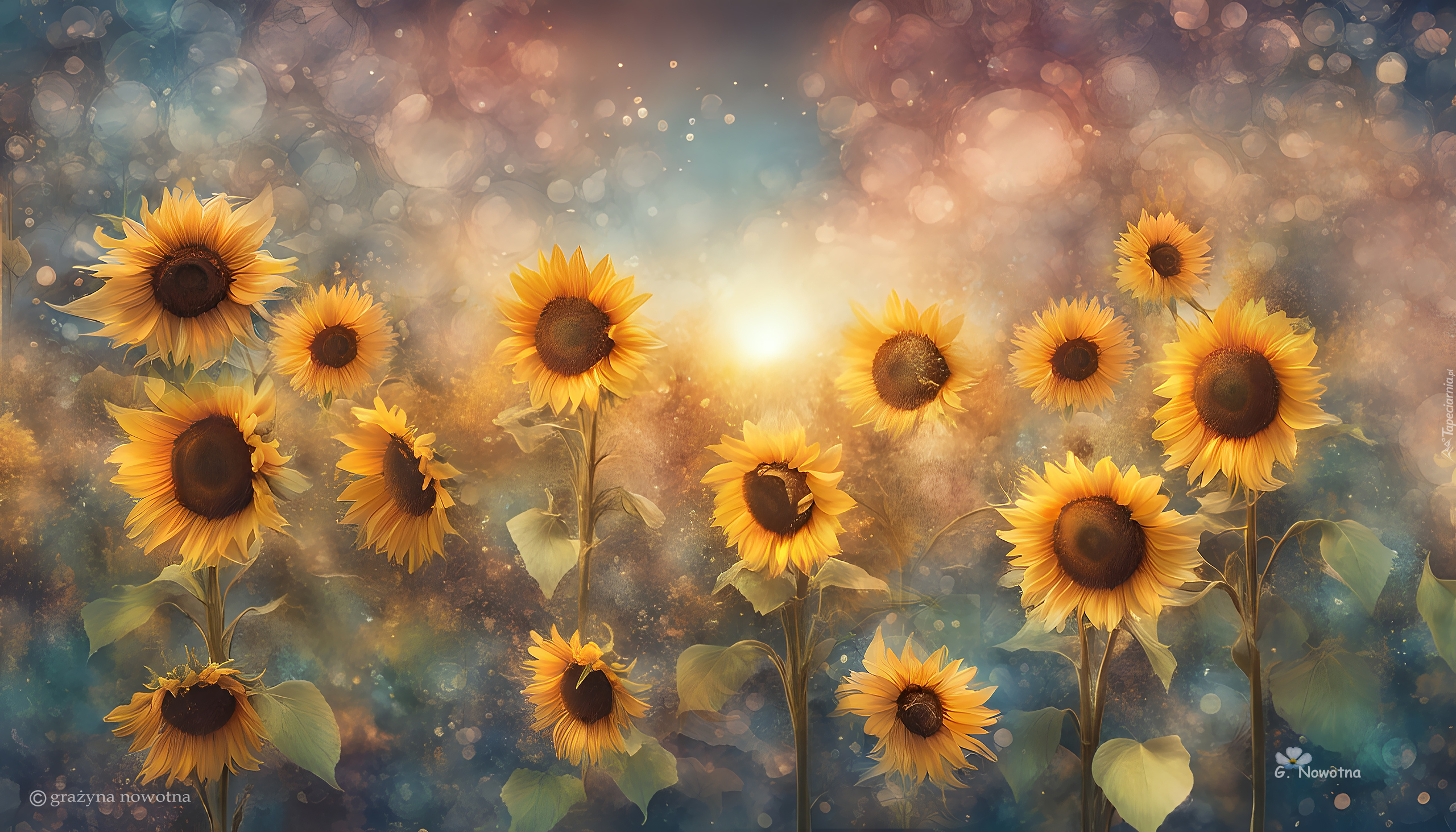 Edytor tapety: Słoneczniki na rozmytym słonecznym tle
