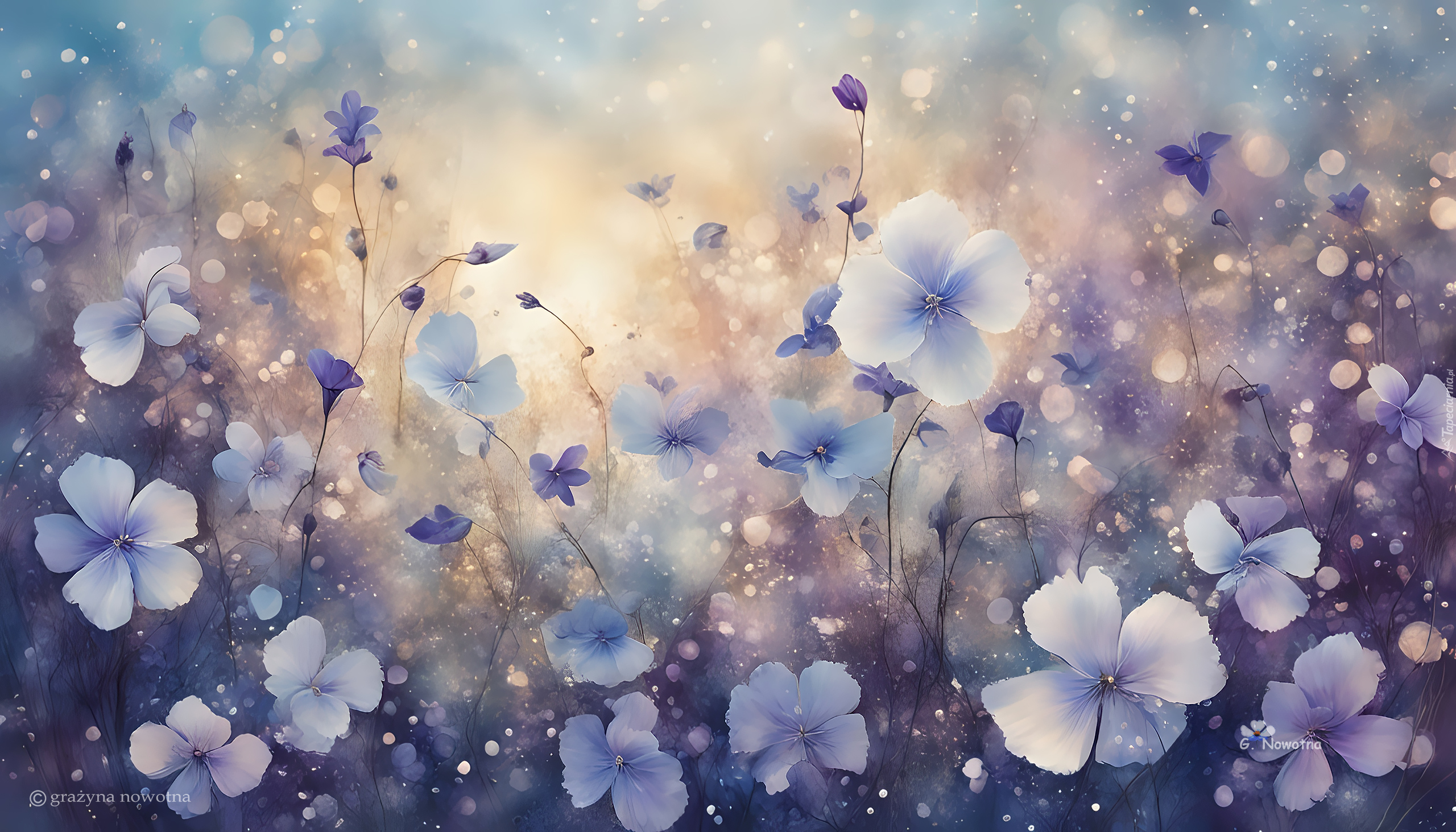 Edytor tapety: Drobne liliowe kwiatki na rozświetlonym tle