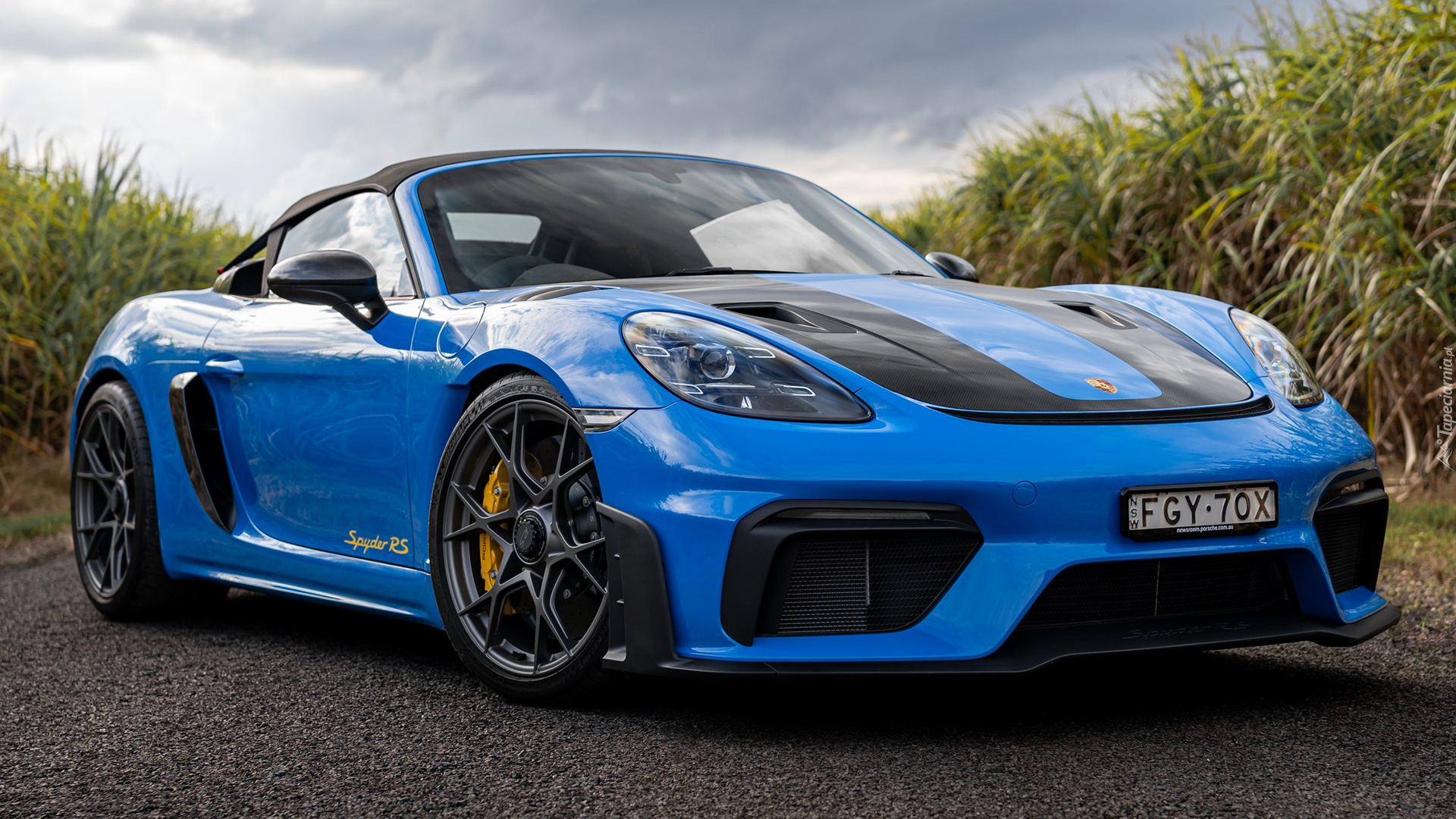 Edytor tapety: Niebieskie Porsche 718 Spyder RS przód i bok