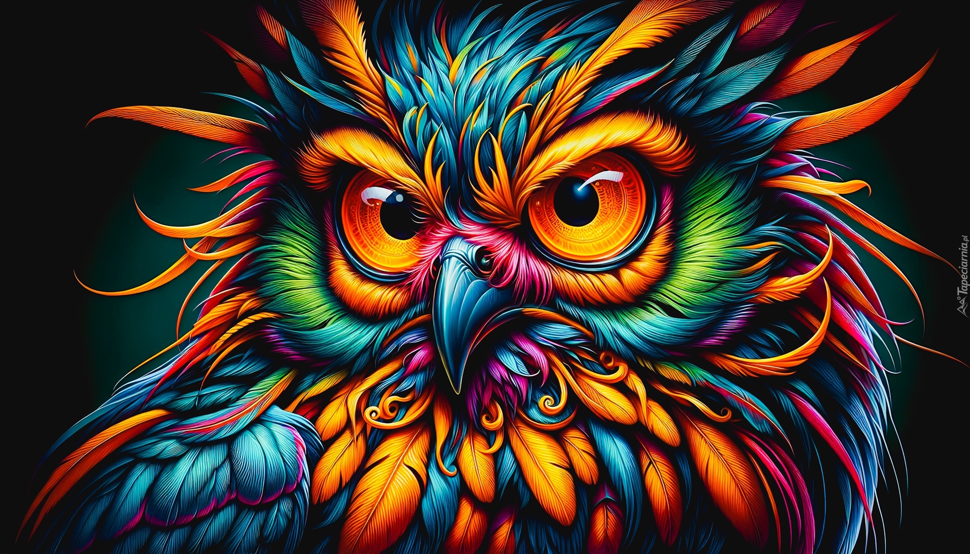 Edytor tapety: Sowa z kolorowymi piórami w grafice 2D