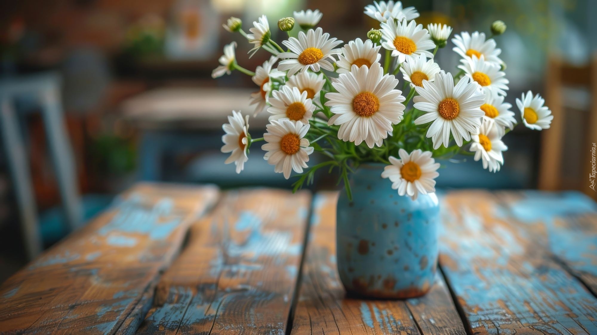 Edytor tapety: Białe kwiaty w wazonie na deskach