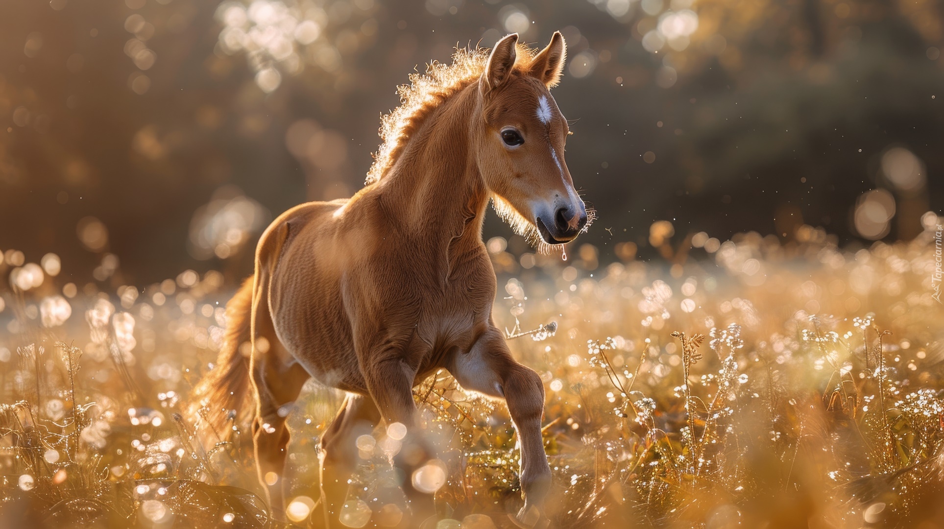 Edytor tapety: Źrebak na słonecznej ukwieconej łące
