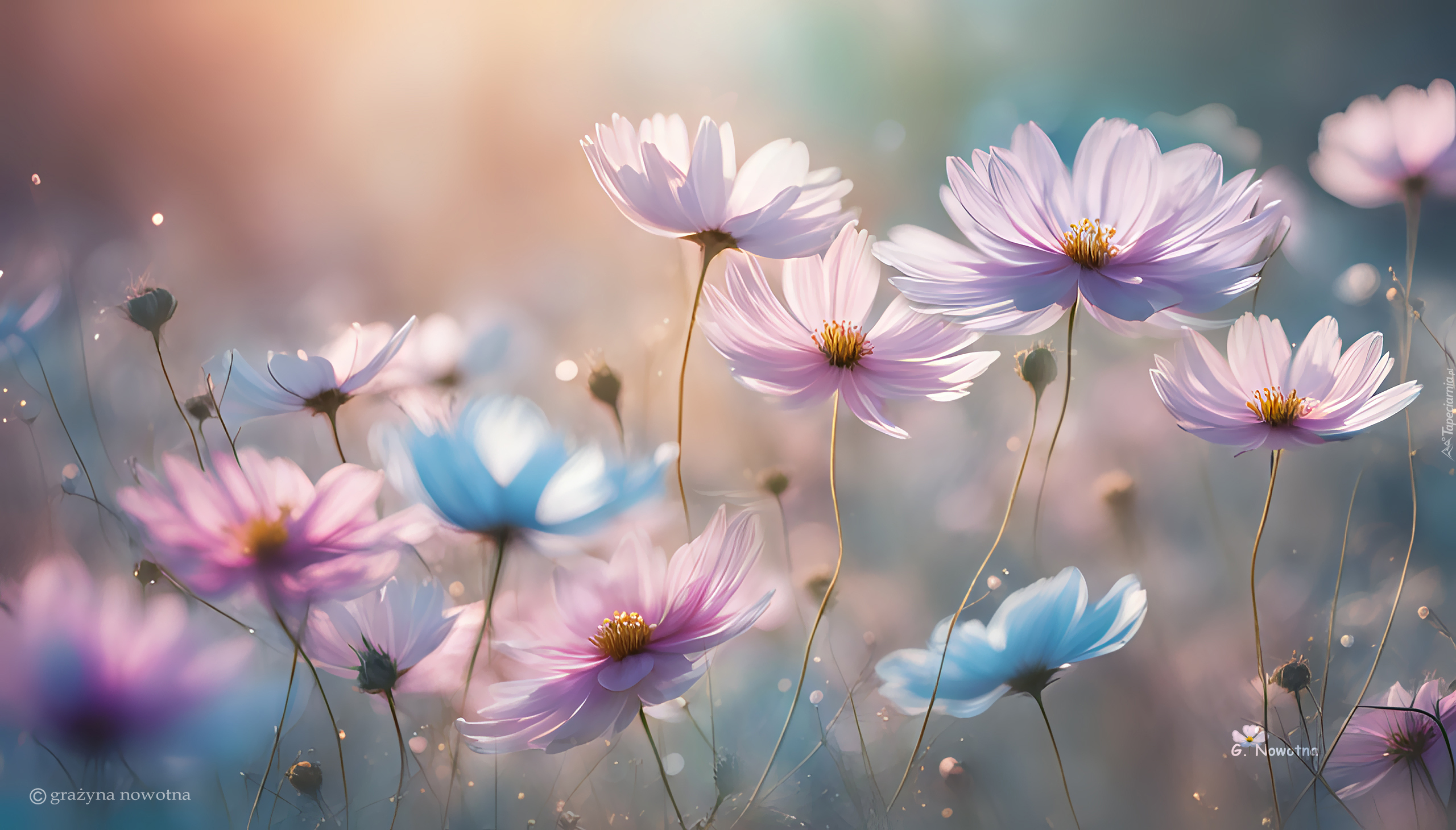 Edytor tapety: Różowa i niebieska kosmea w zbliżeniu