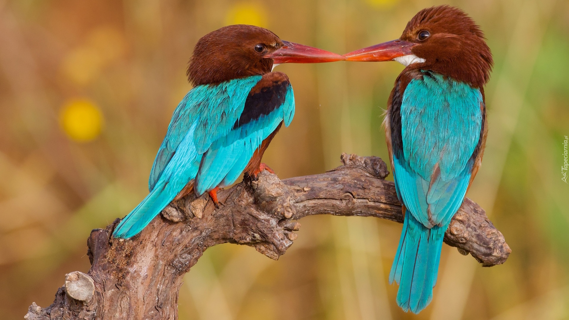 Edytor tapety: Dwa łowce krasnodziobe na suchym konarze