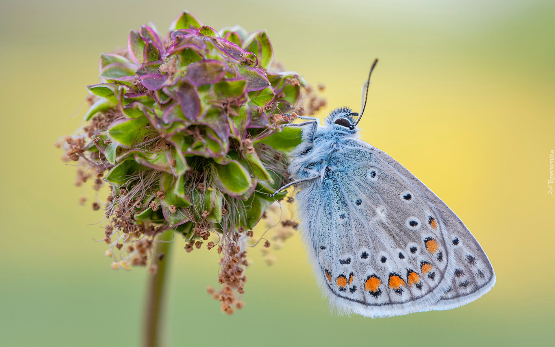 Edytor tapety: Niebieski modraszek ikar na roślinie w zbliżeniu