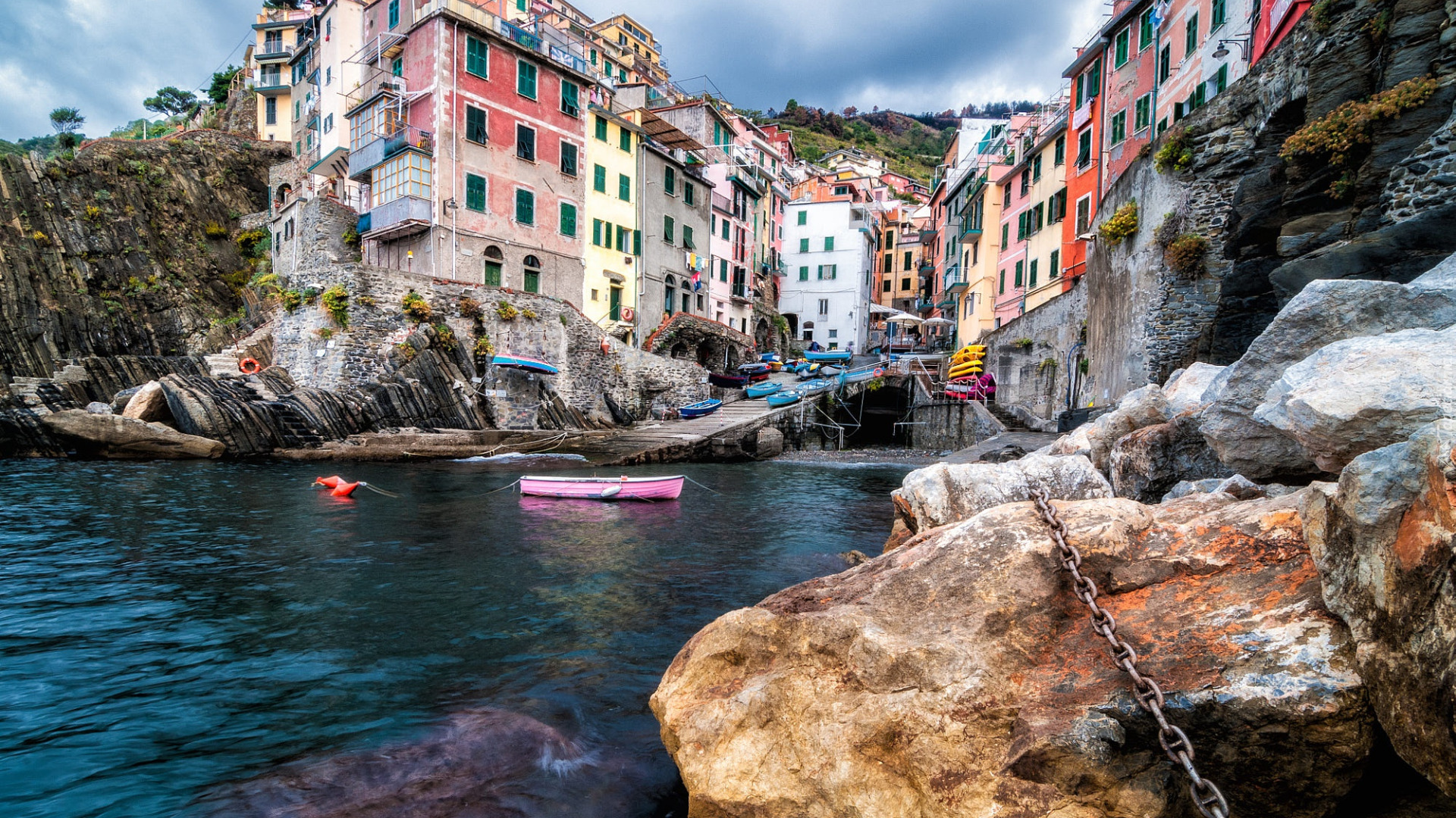 Edytor tapety: Riomaggiore na wybrzeżu Cinque Terre we Włoszech