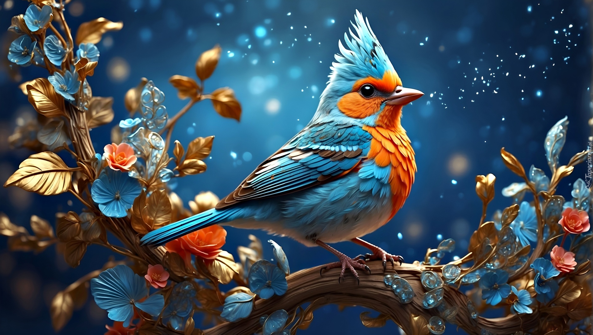 Edytor tapety: Kolorowy ptak z niebieskim czubem