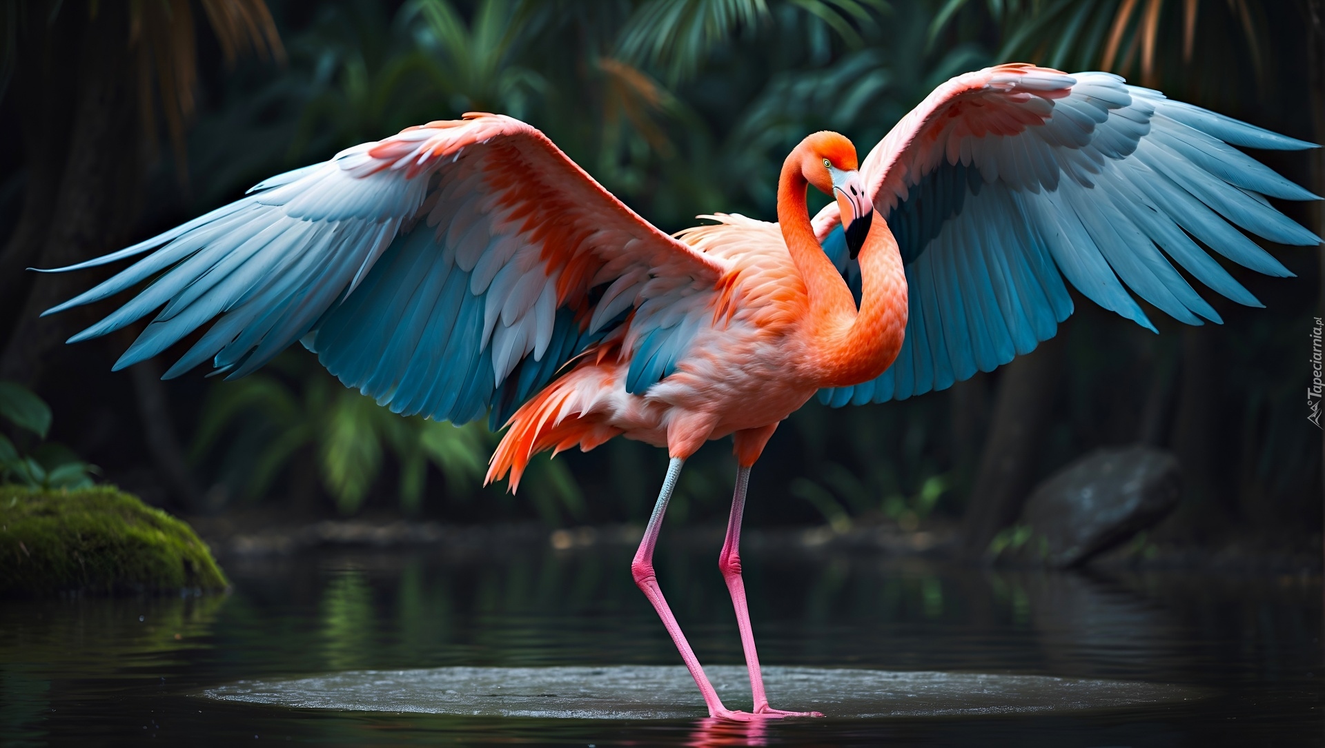 Edytor tapety: Kolorowy flaming z rozpostartymi skrzydłami